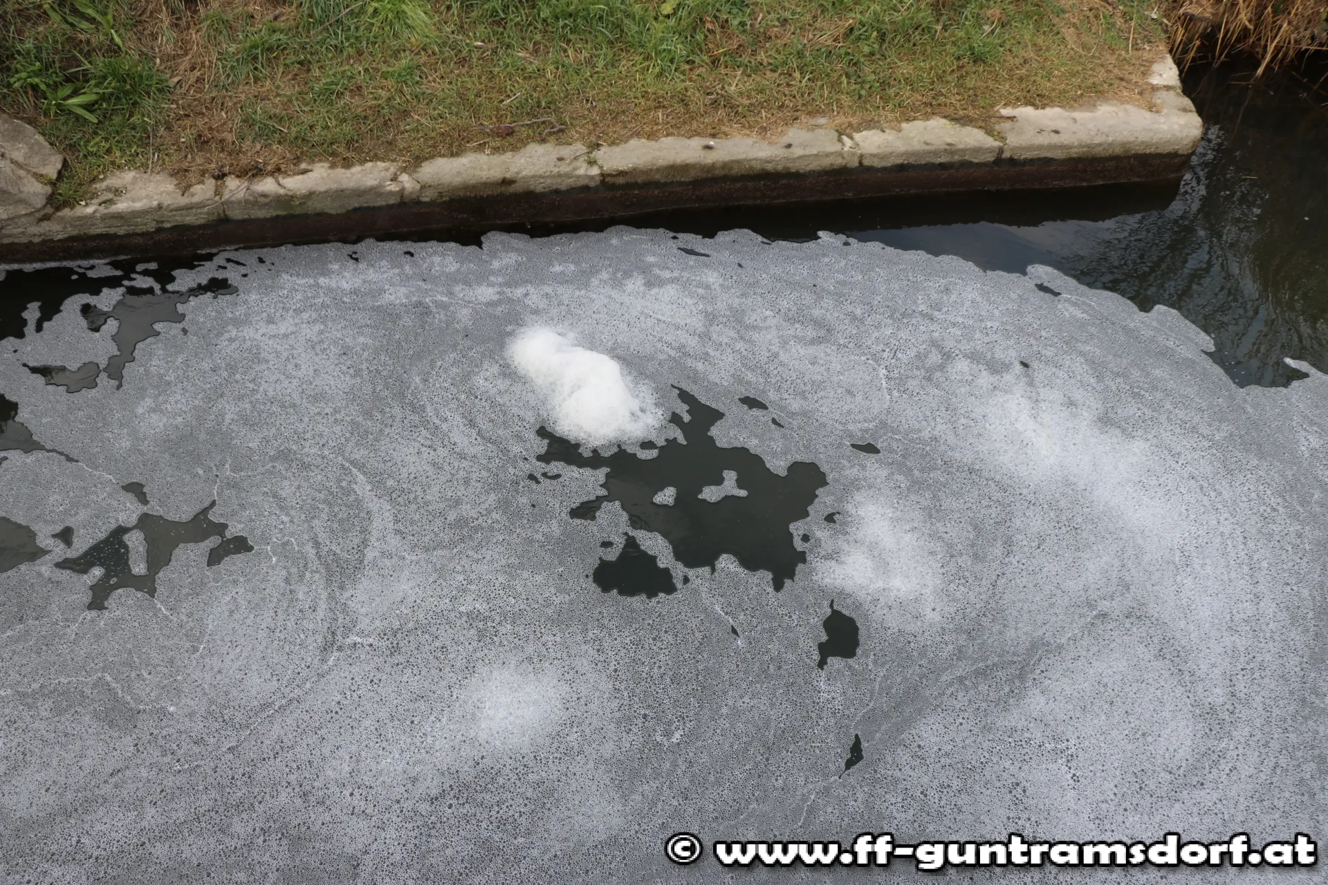 Um eine Gefährdung auszuschließen, wurde der Schadstoffberatungsdienst des NÖ Feuerwehrverbandes alarmiert. Dieser – mit zwei Mitgliedern in Mödling stationiert – traf kurz danach in Guntramsdorf ein. Der Bezirkssachbearbeiter Schadstoff, Ing. Manfred Haslinger, entnahm mehrere Proben und konnte die Schaumbildung als „ungefährlich für die Umwelt“ einstufen.