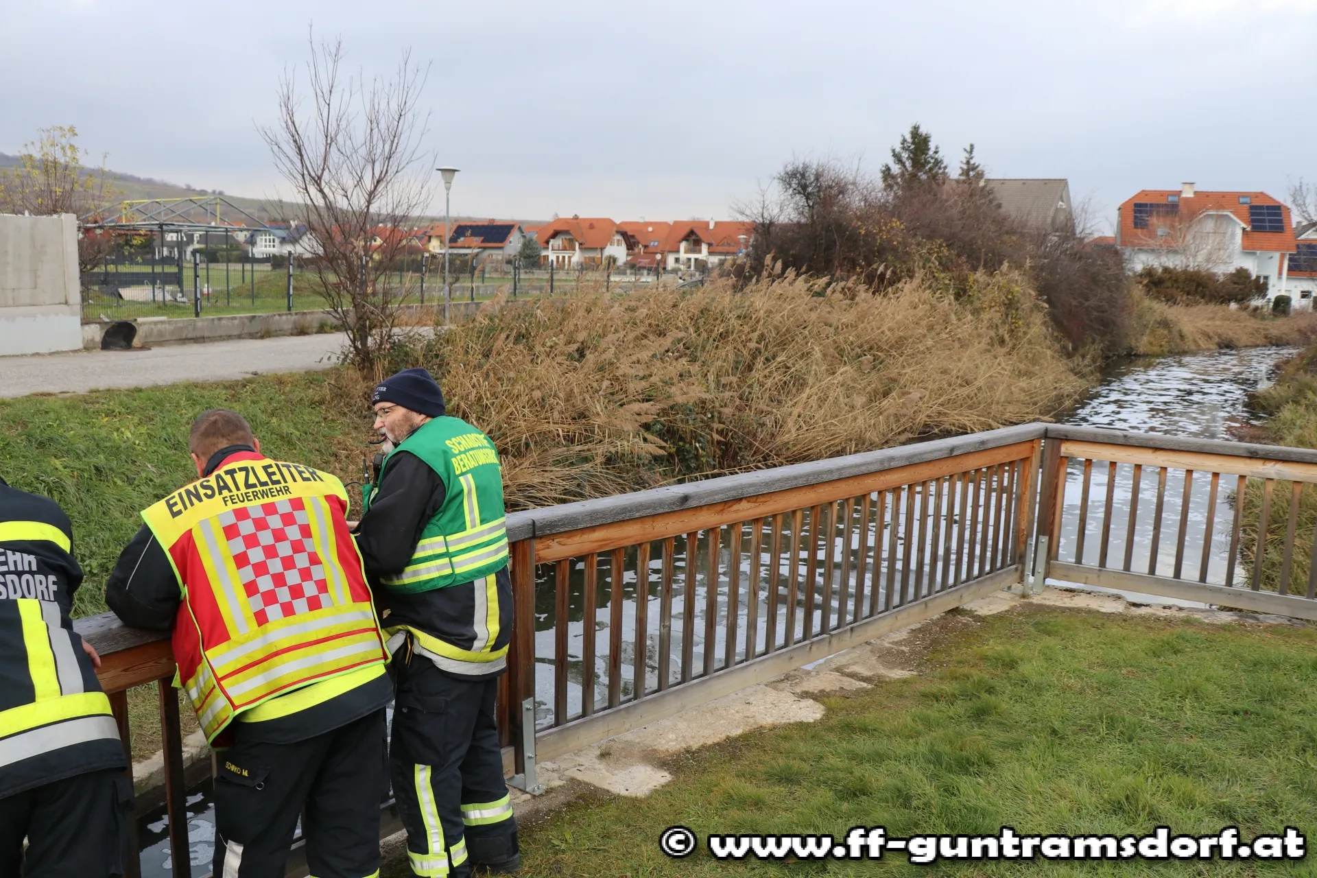 Am Samstag den 14. Dezember wurde die Feuerwehr Guntramsdorf um 10:30 Uhr zu einer Gewässerverunreinigung am Wr. Neustädter Kanal alarmiert.