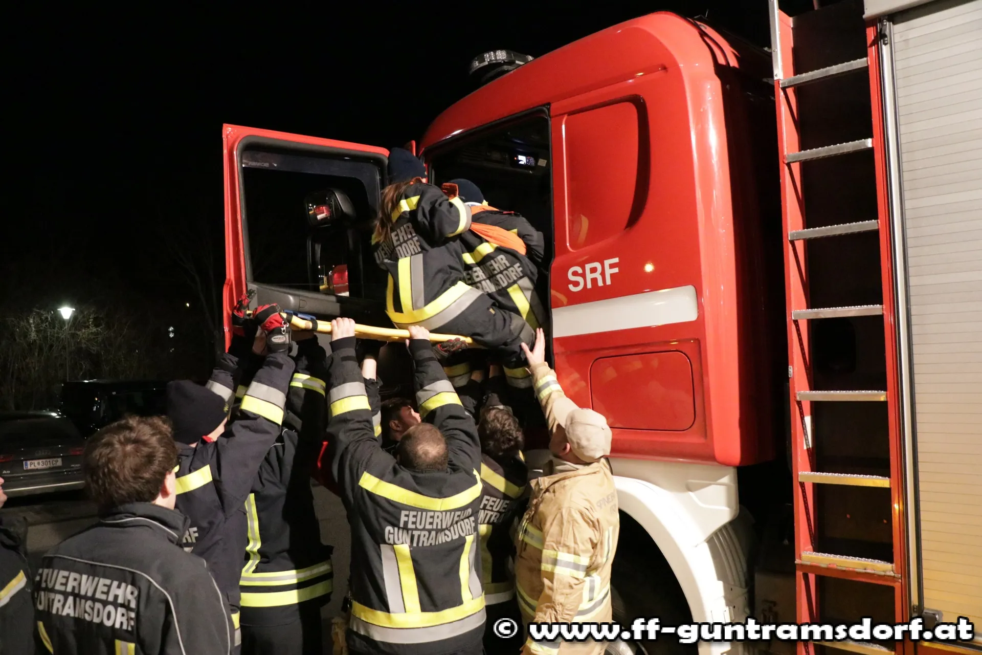 Da letztes Jahr vermehrt das Spineboard (Anm.: Rettungsbrett für die achsengerechte Rettung von verletzten Personen) zum Einsatz gekommen ist, wurde Ende 2018 Kontakt mit dem Verein „spineboard.at“ aufgenommen. Dieser Verein bildet Feuerwehr- und Rettungsorganisationen aus und lehrt verschiedenste Rettungstechniken von Personen. Auch das Schaffen alternativer Rettungswege bei verunfallten Fahrzeugen war das Thema der Ausbildungseinheiten. Das Team von „spineboard.at“ besteht aus freiwilligen Feuerwehrmitgliedern, welche hauptberuflich bei der Berufsrettung Wien beschäftigt sind.