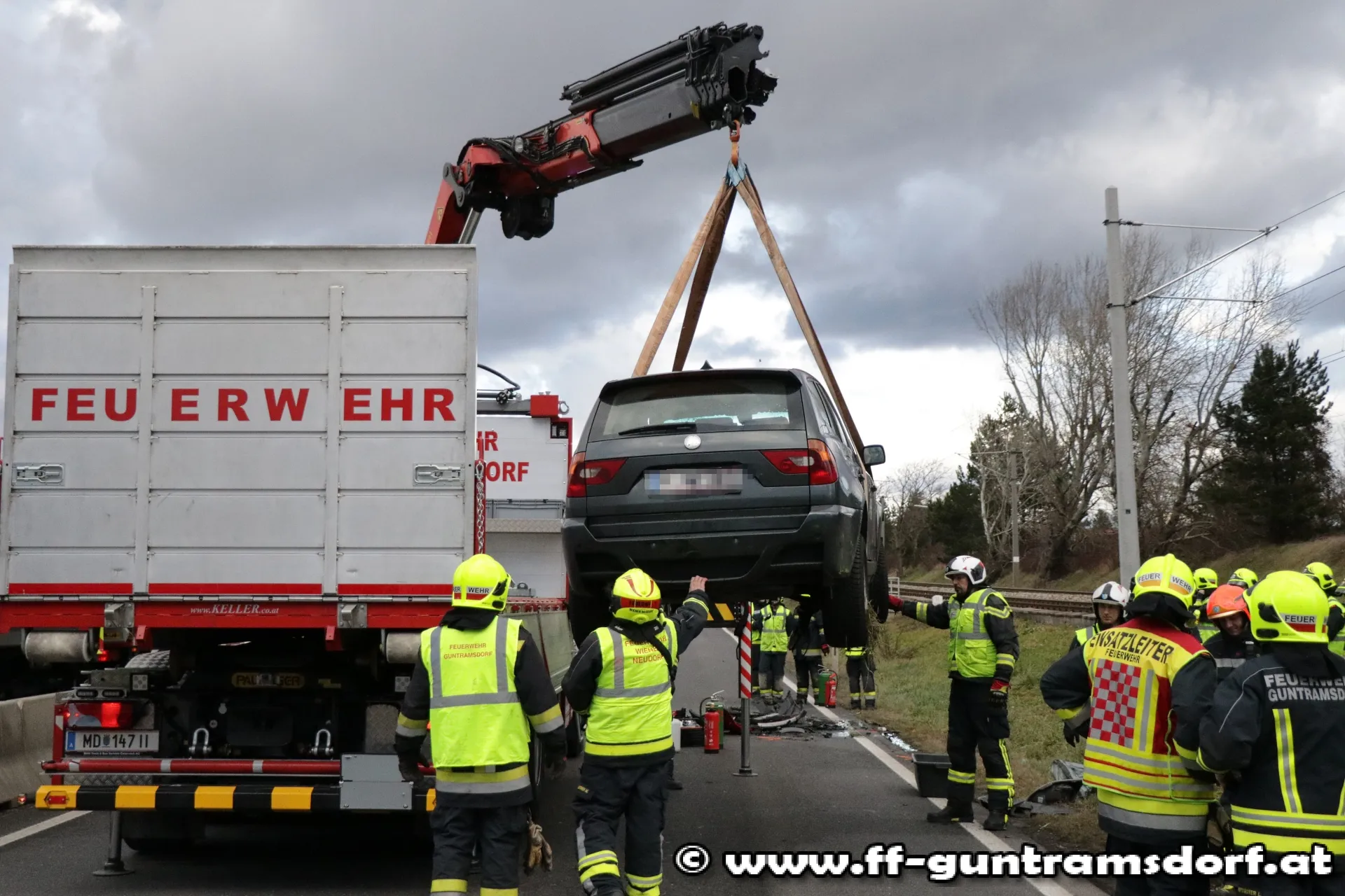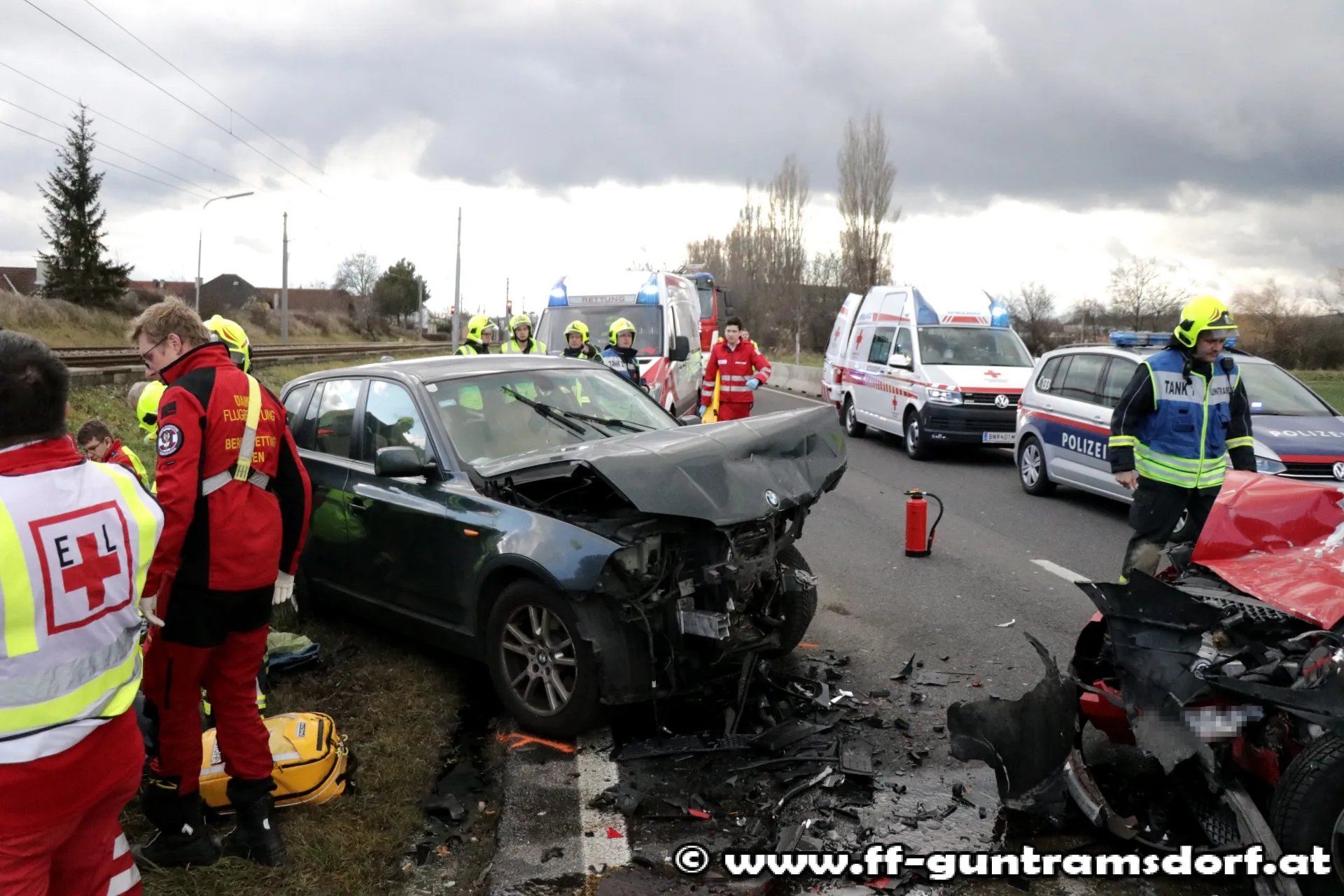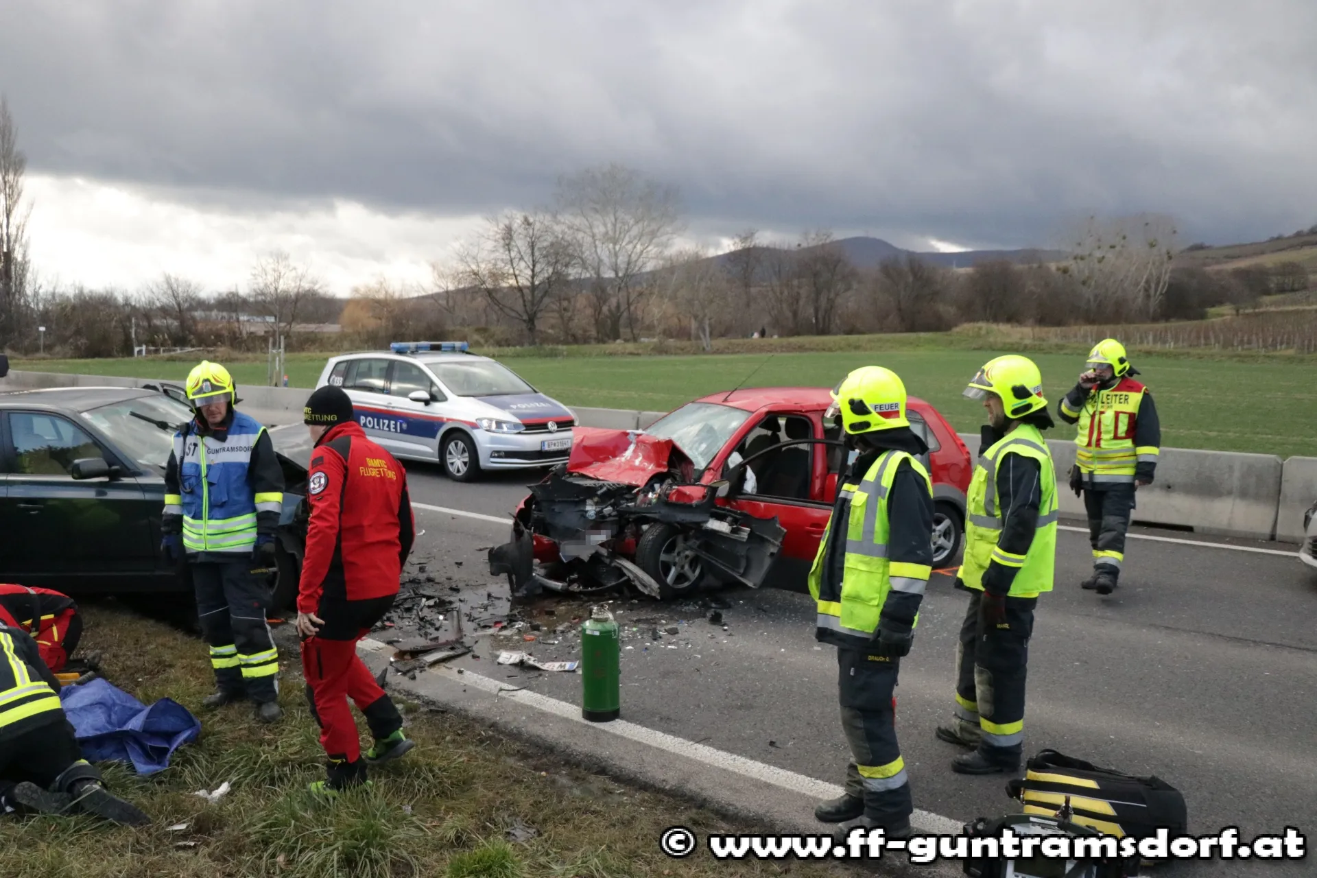 Am Stefanitag wurden die Mitglieder der Feuerwehr Guntramsdorf kurz nach 12 Uhr mittels Sirene und Pager zu einem Verkehrsunfall mit Menschenrettung auf die B17 alarmiert.
