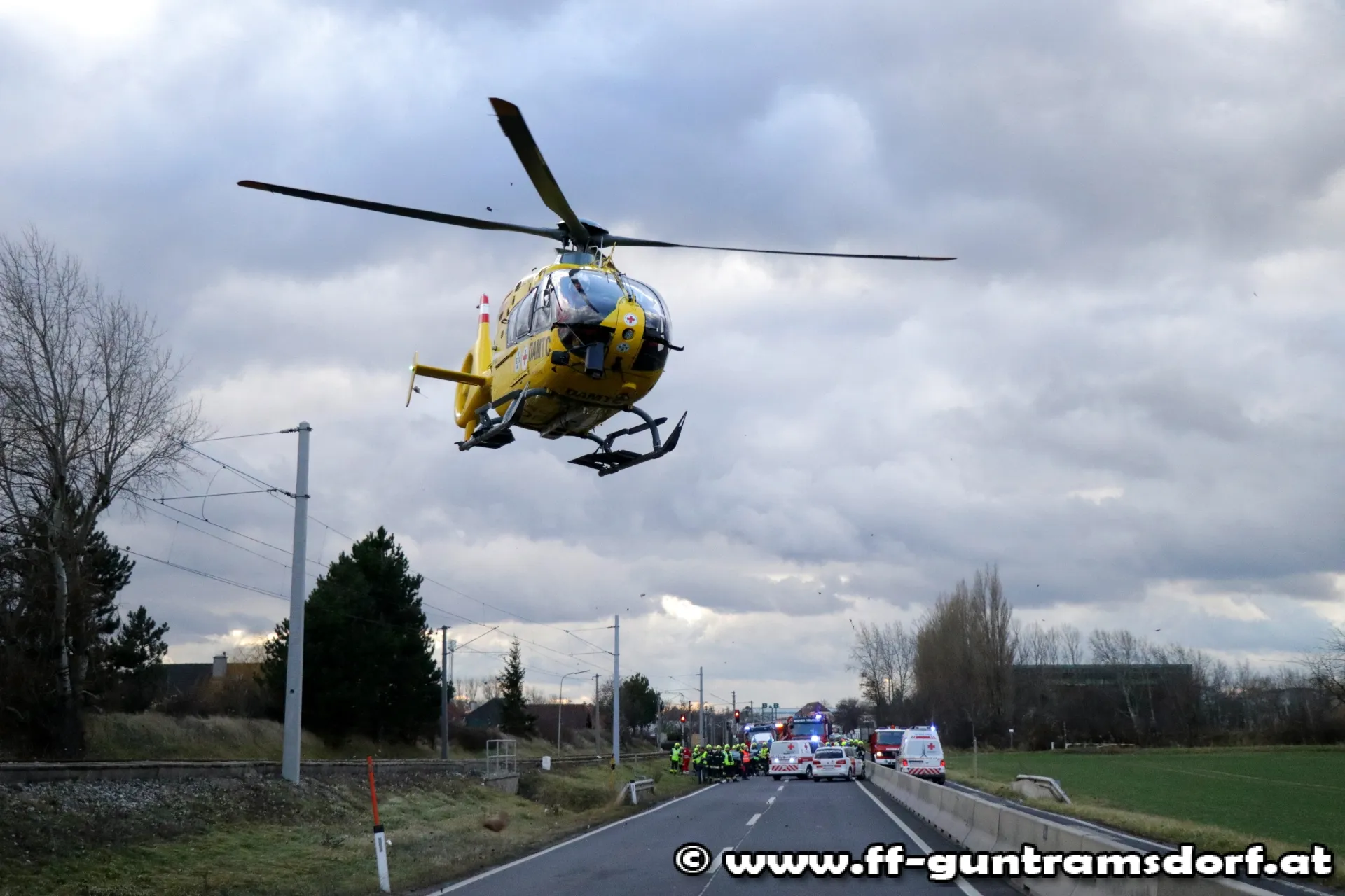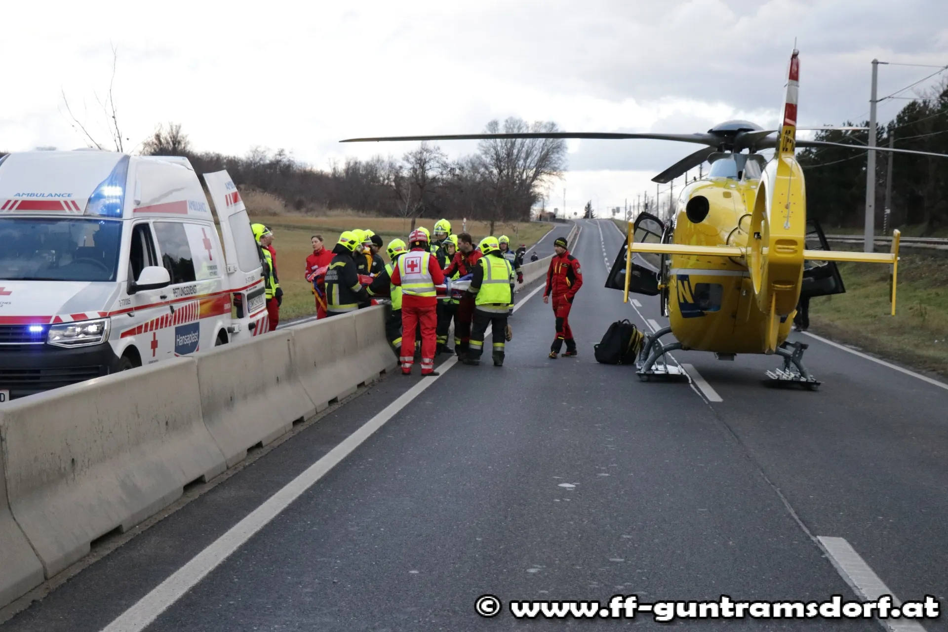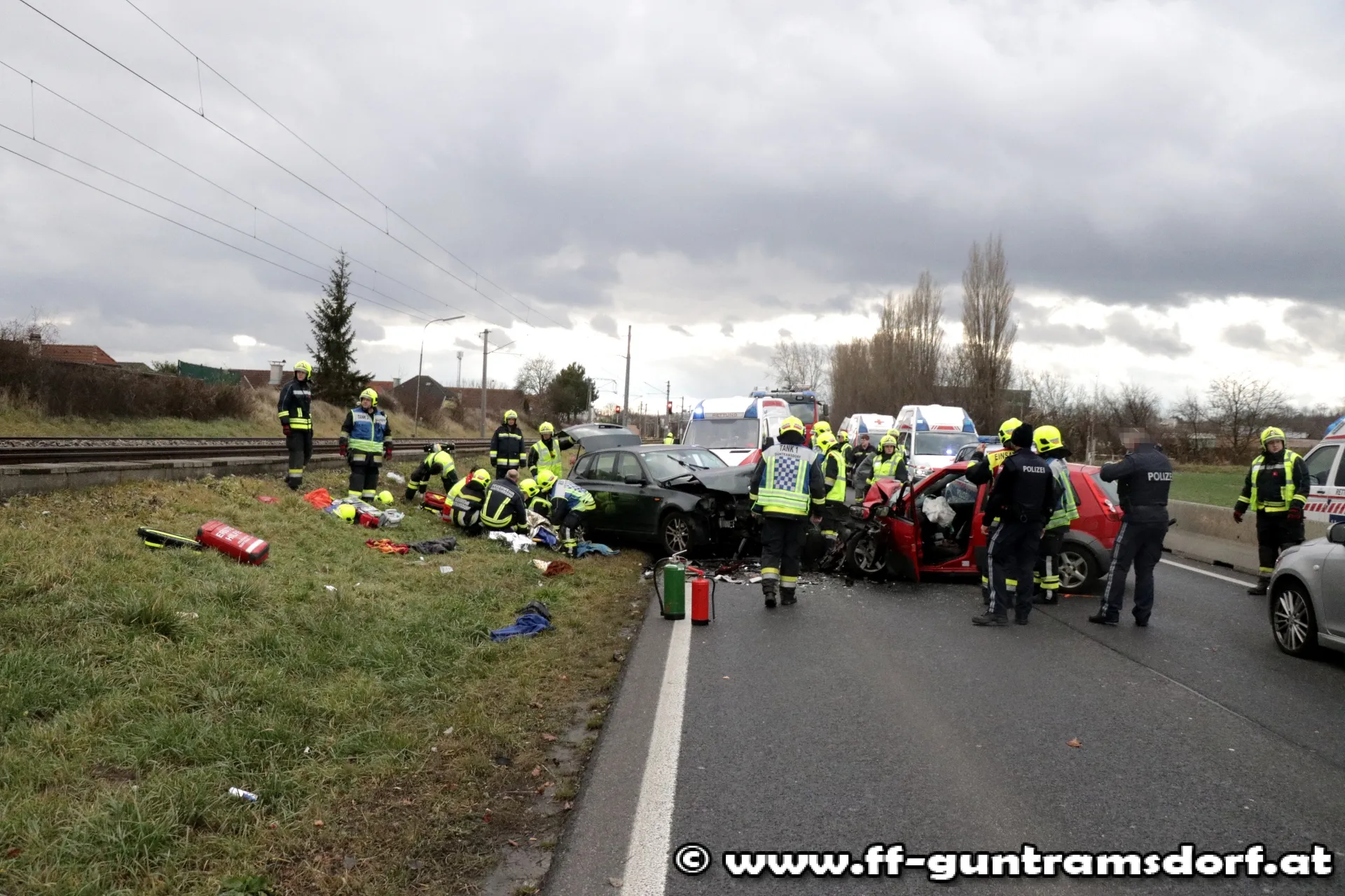 Am Stefanitag wurden die Mitglieder der Feuerwehr Guntramsdorf kurz nach 12 Uhr mittels Sirene und Pager zu einem Verkehrsunfall mit Menschenrettung auf die B17 alarmiert.