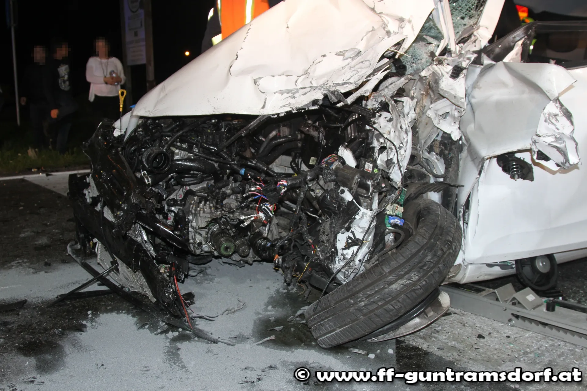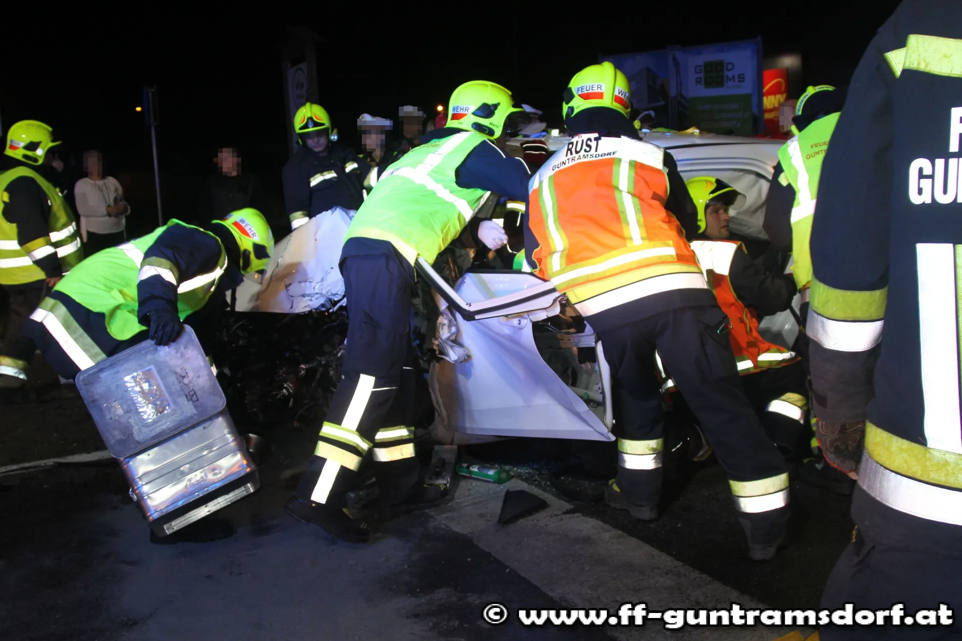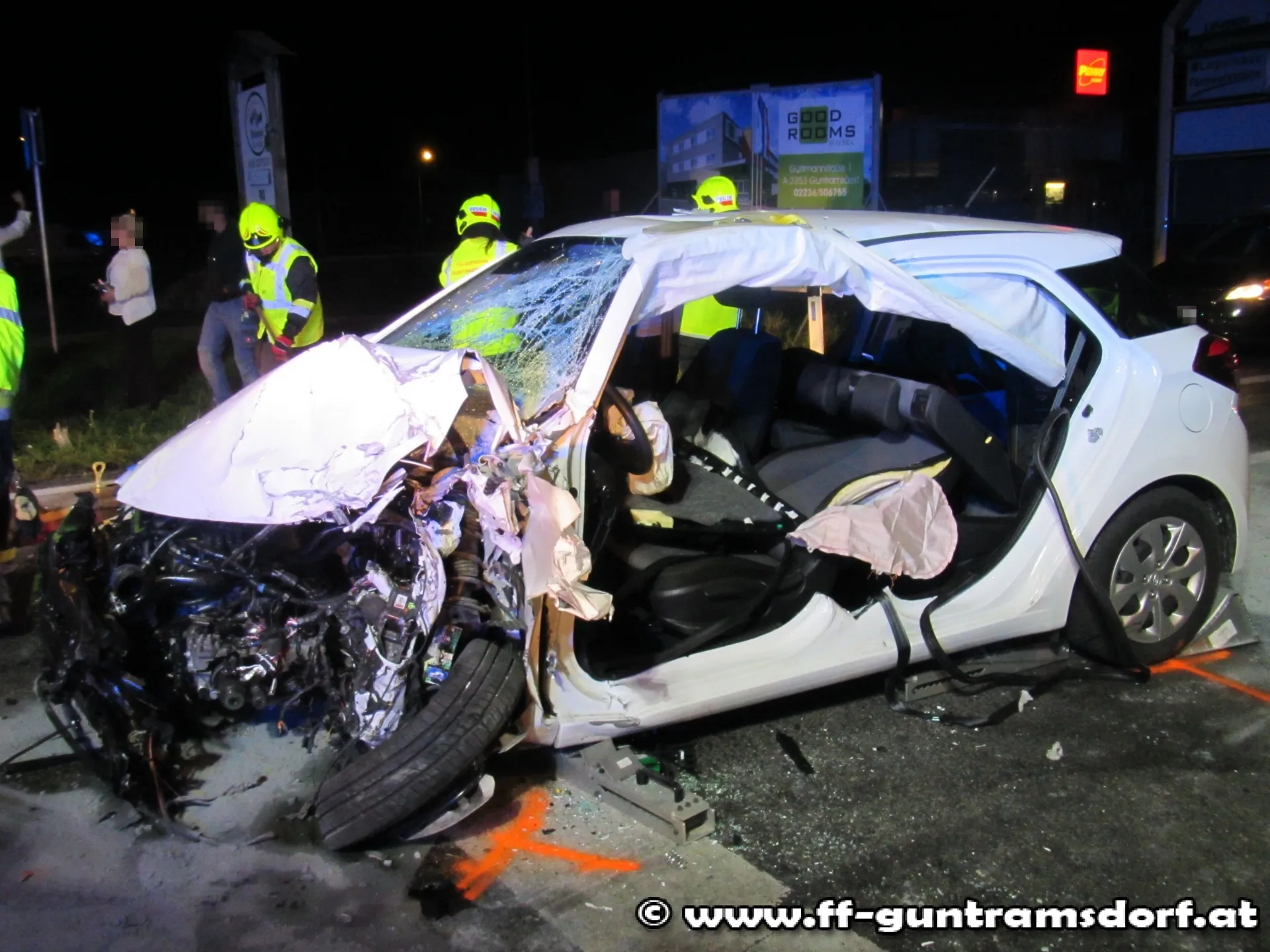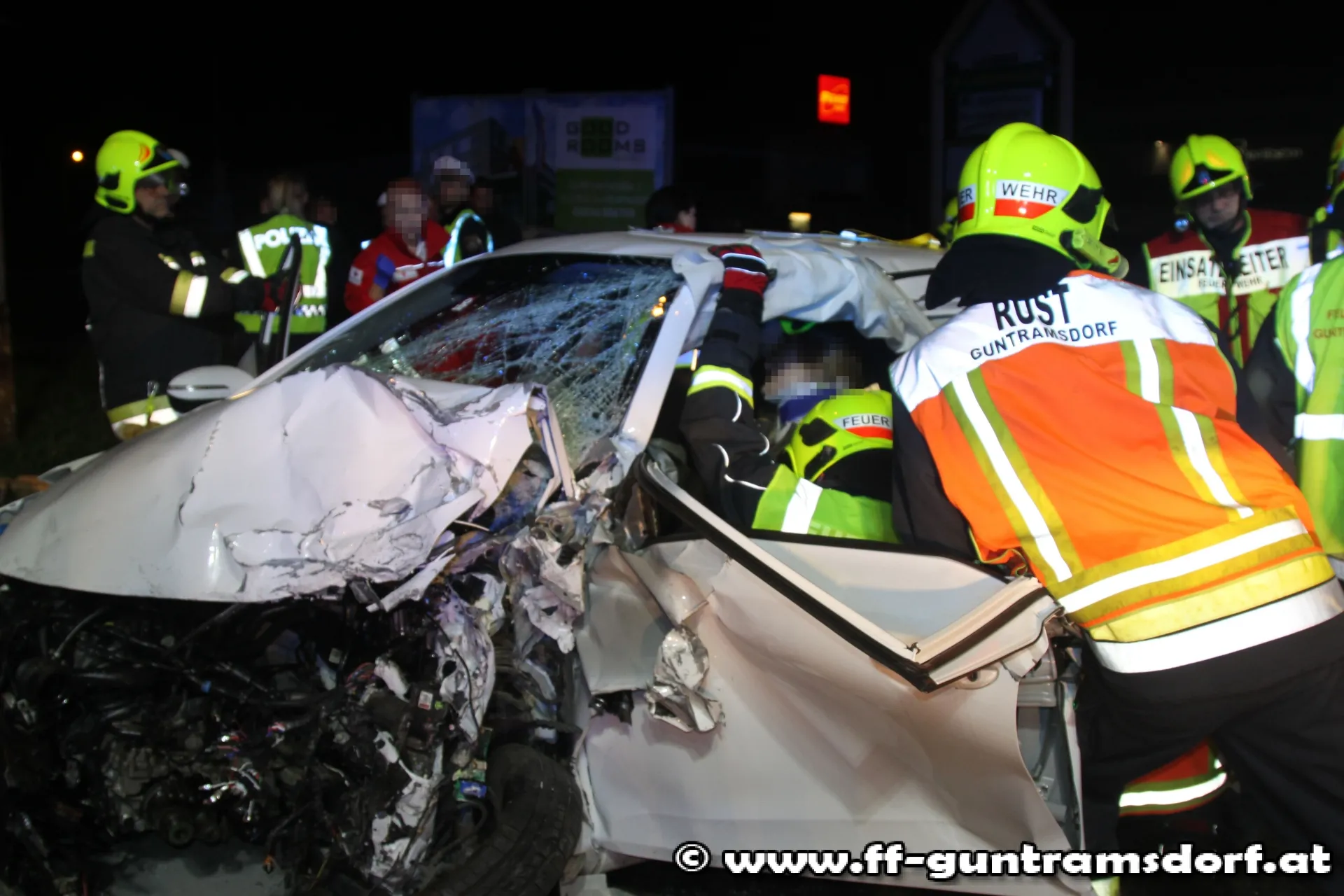 Beim Eintreffen nahm die Mannschaft aus dem HLF Guntramsdorf sofort die Menschenrettung vor. Mittels hydraulischen Rettungsgerät wurden auf der Fahrerseite beide Türen, sowie die B-Säule entfernt, um eine möglichst schonende Rettung der Verletzten durchzuführen.