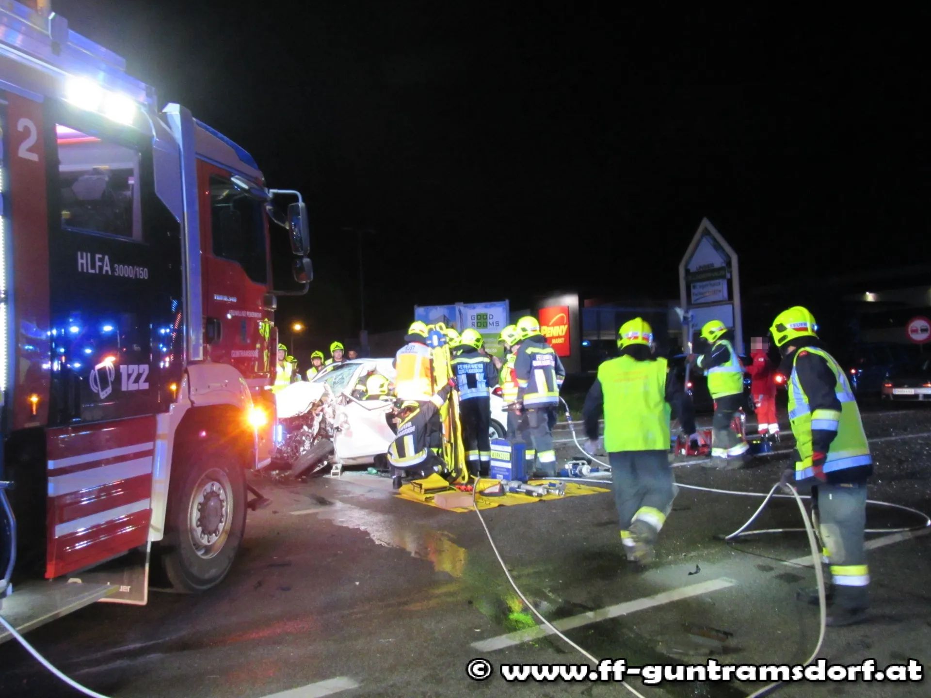 Am Abend des 26. September wurde die Feuerwehr Guntramsdorf mittels Sirene, Pager und Alarm-SMS zu einem schweren Verkehrsunfall mit Menschenrettung auf die Bundesstraße 17 alarmiert.