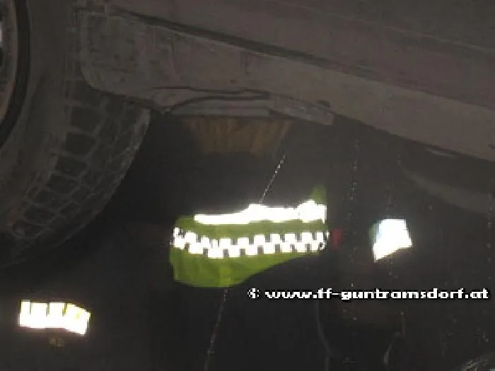 Aufgrund der Pagerdurchsage „Eine Person eingeklemmt, PKW beginnt zu brennen“ fuhr Tank 2 – nicht nur mit Wasser sondern auch mit hydraulischem Rettungsgerät ausgerüstet – als erster zur Unfallstelle. In kurzen Abständen folgten das Schwere Rüstfahrzeug (SRF), Kommandofahrzeug, Tank 1 und das Versorgungsfahrzeug (Last).