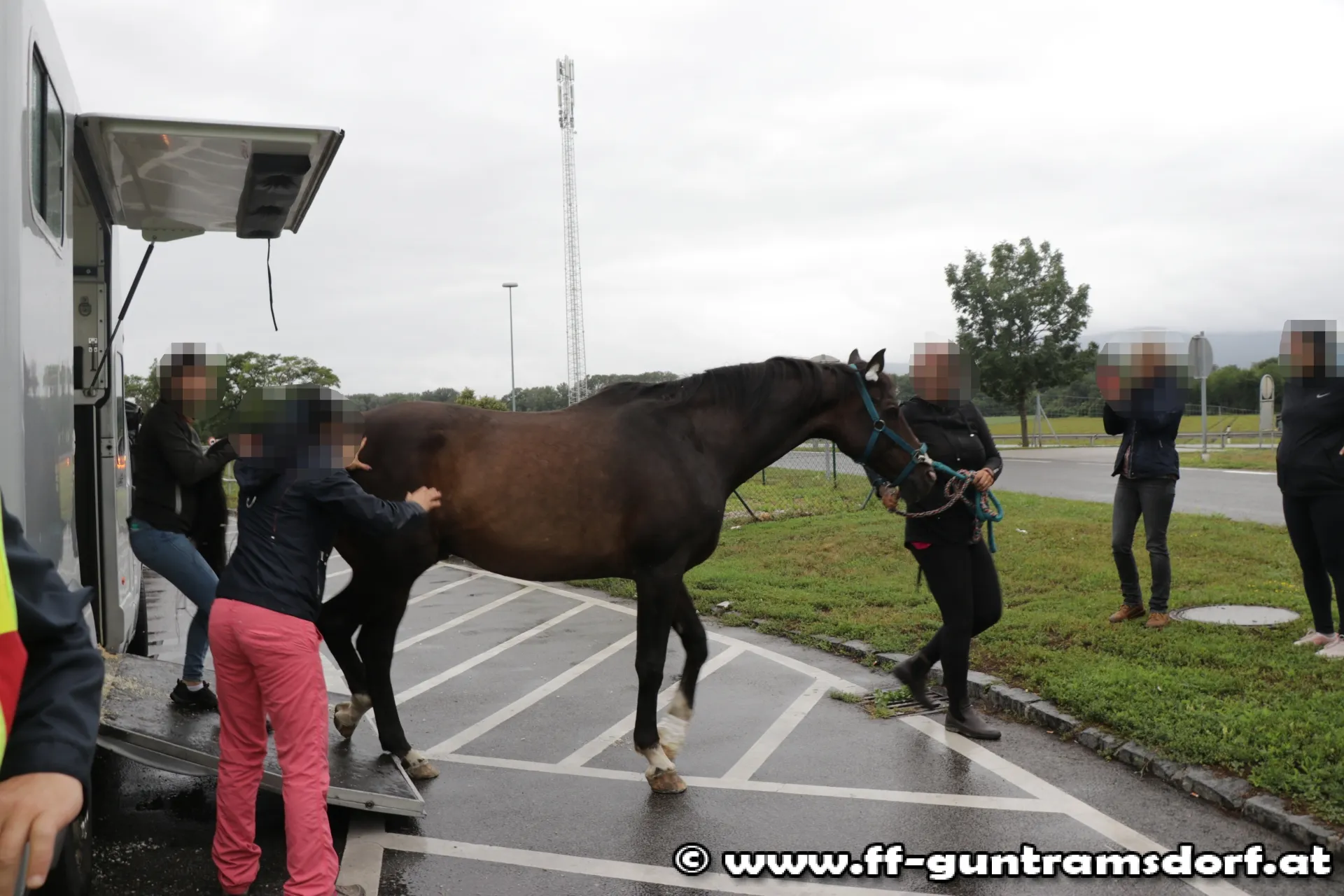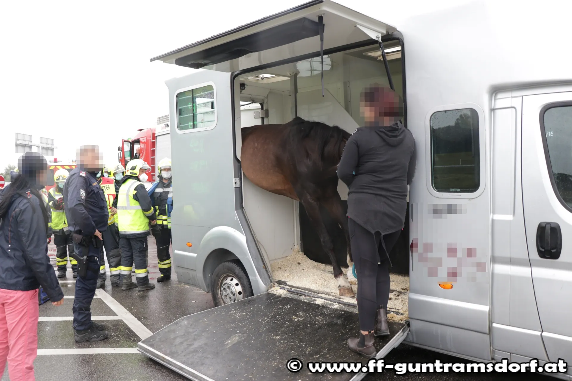Zu einem nicht alltäglichen Einsatz wurde die Feuerwehr Guntramsdorf am 5. August um 10:55 Uhr zu einer Tierrettung „Pferd in Transportbox eingeklemmt“ auf die A2 Raststation Guntramsdorf alarmiert.