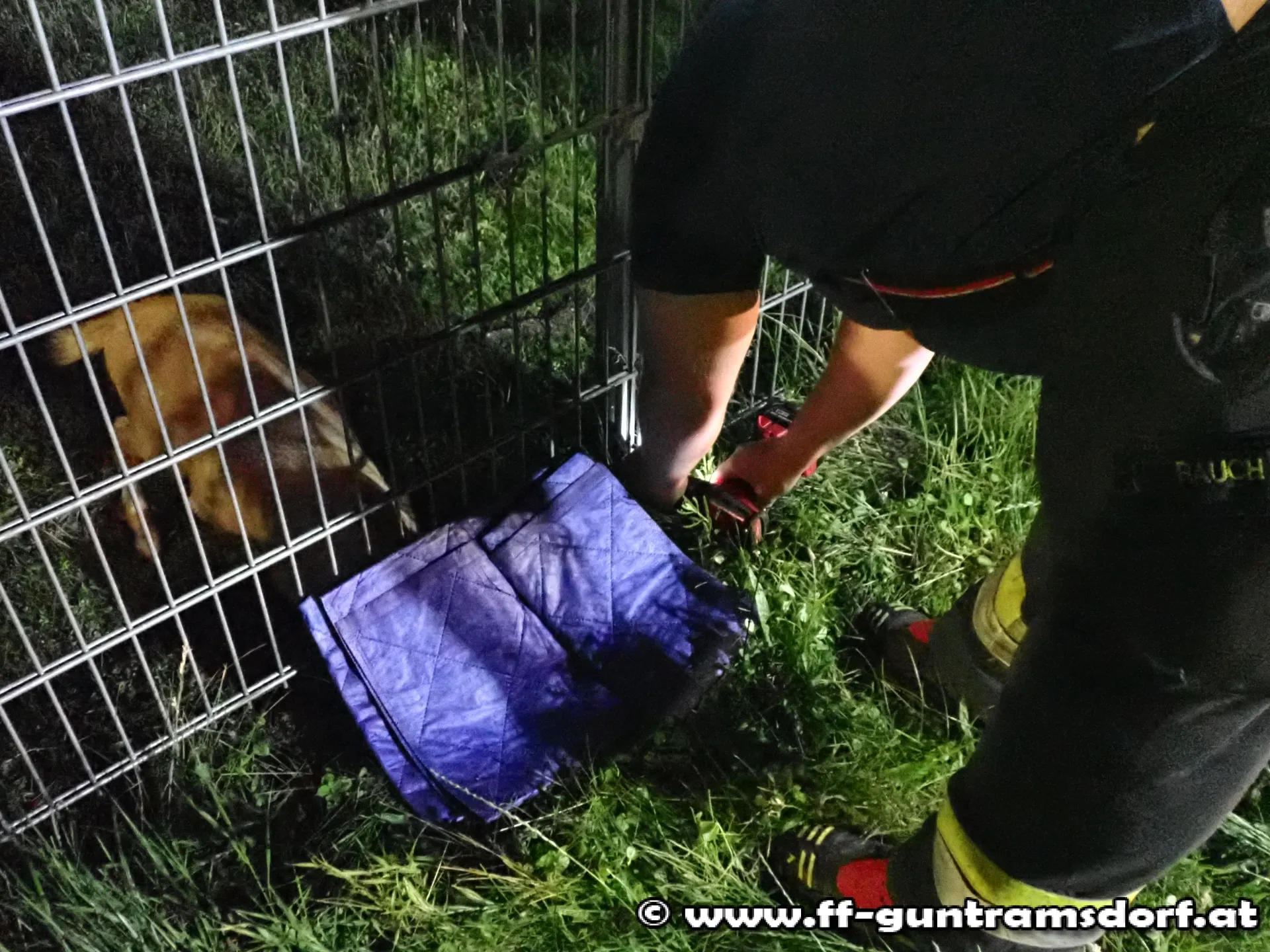 Wie bereits am Vortag, wurde die Feuerwehr Guntramsdorf um 23 Uhr zu einer Tierrettung „Ziege steckt unter Zaun fest“ in die Industriestraße alarmiert.