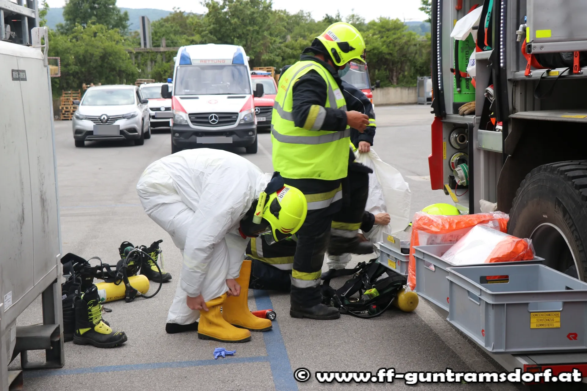 Nachdem alle ins Freie gebracht waren, wurde die Halle belüftet und durch die Betriebsfeuerwehr gereinigt. Die Feuerwehr Guntramsdorf konnte nach 2 Stunden wieder ins Feuerwehrhaus einrücken, jedoch nahmen die Reinigungsarbeiten noch einige Zeit in Anspruch.