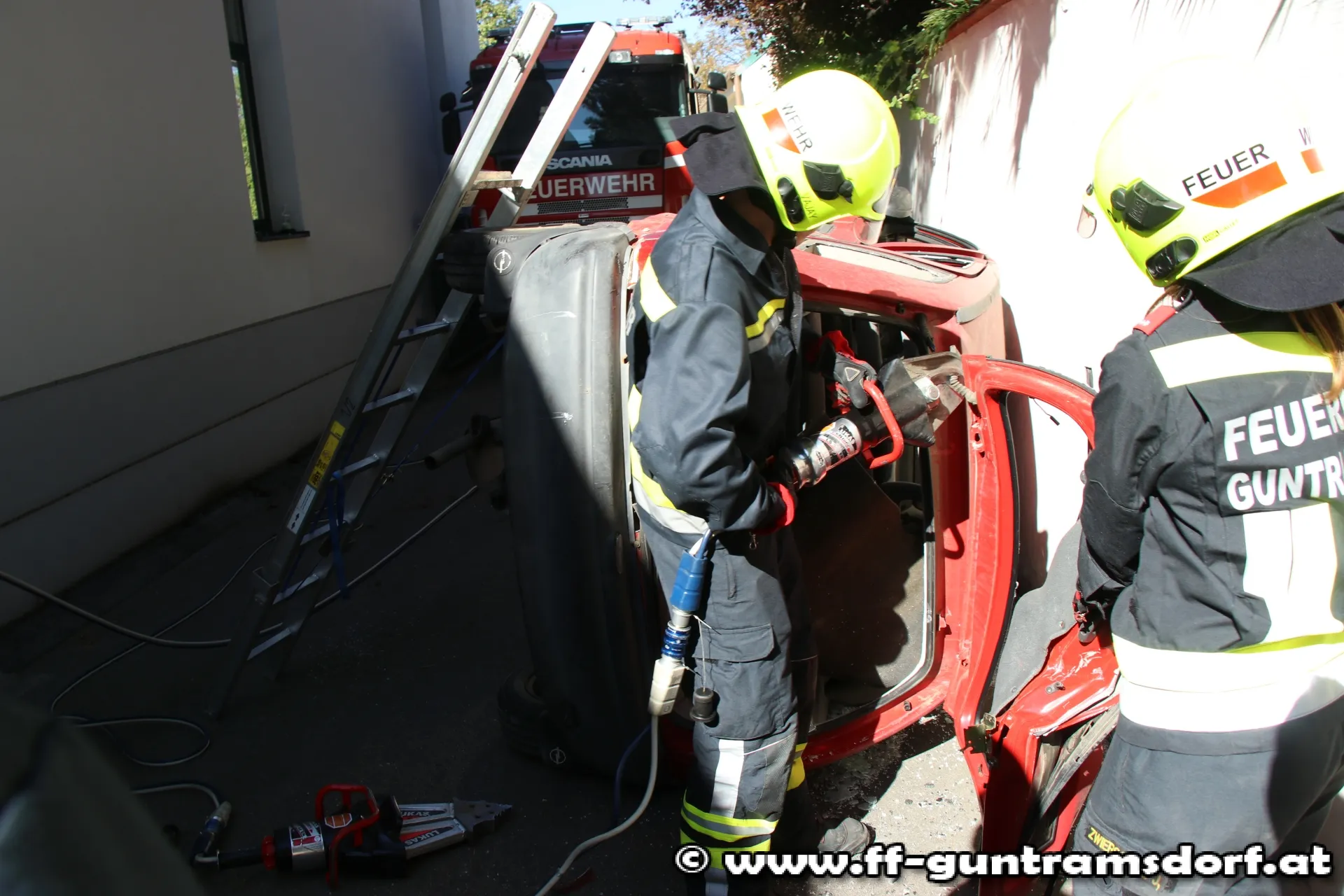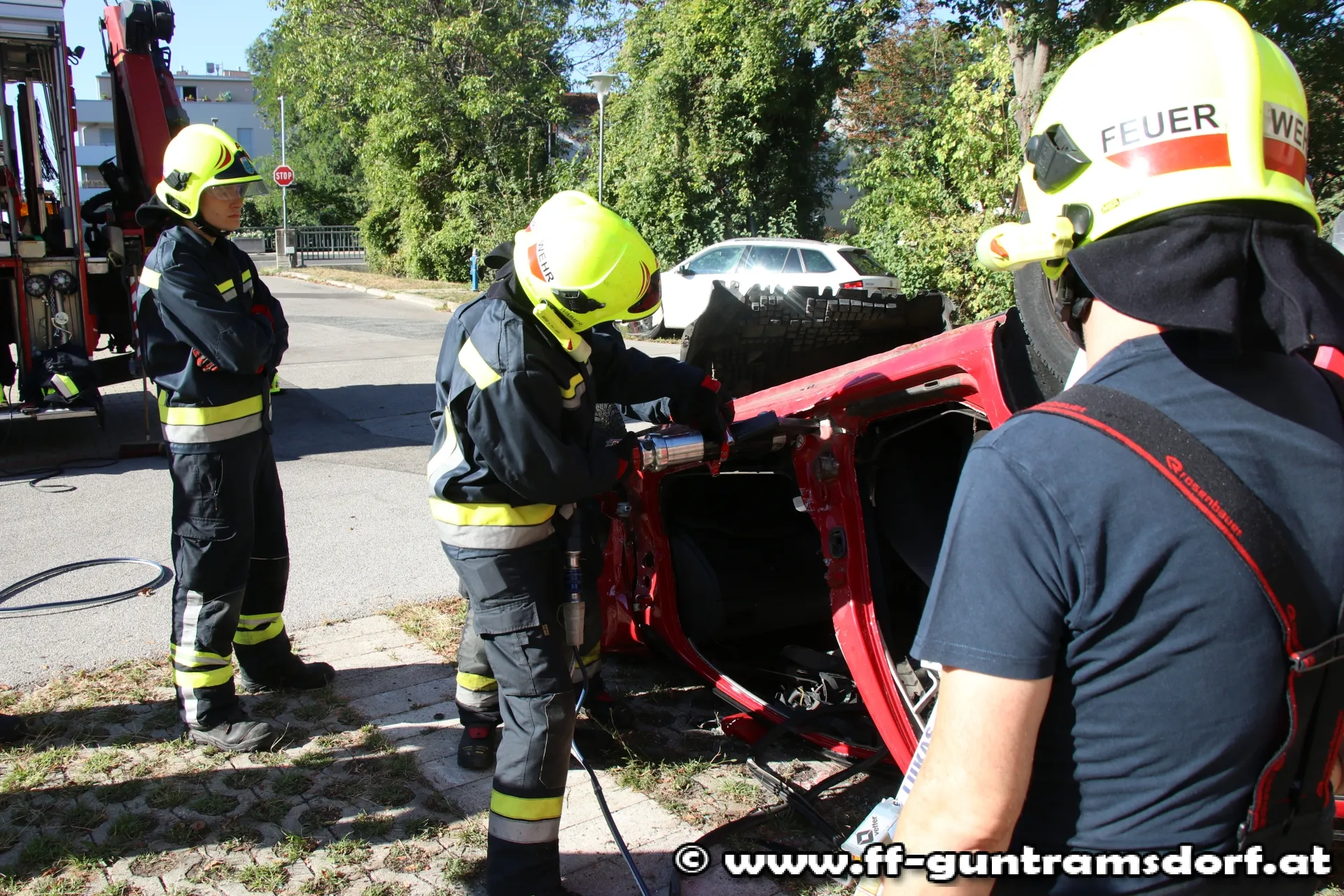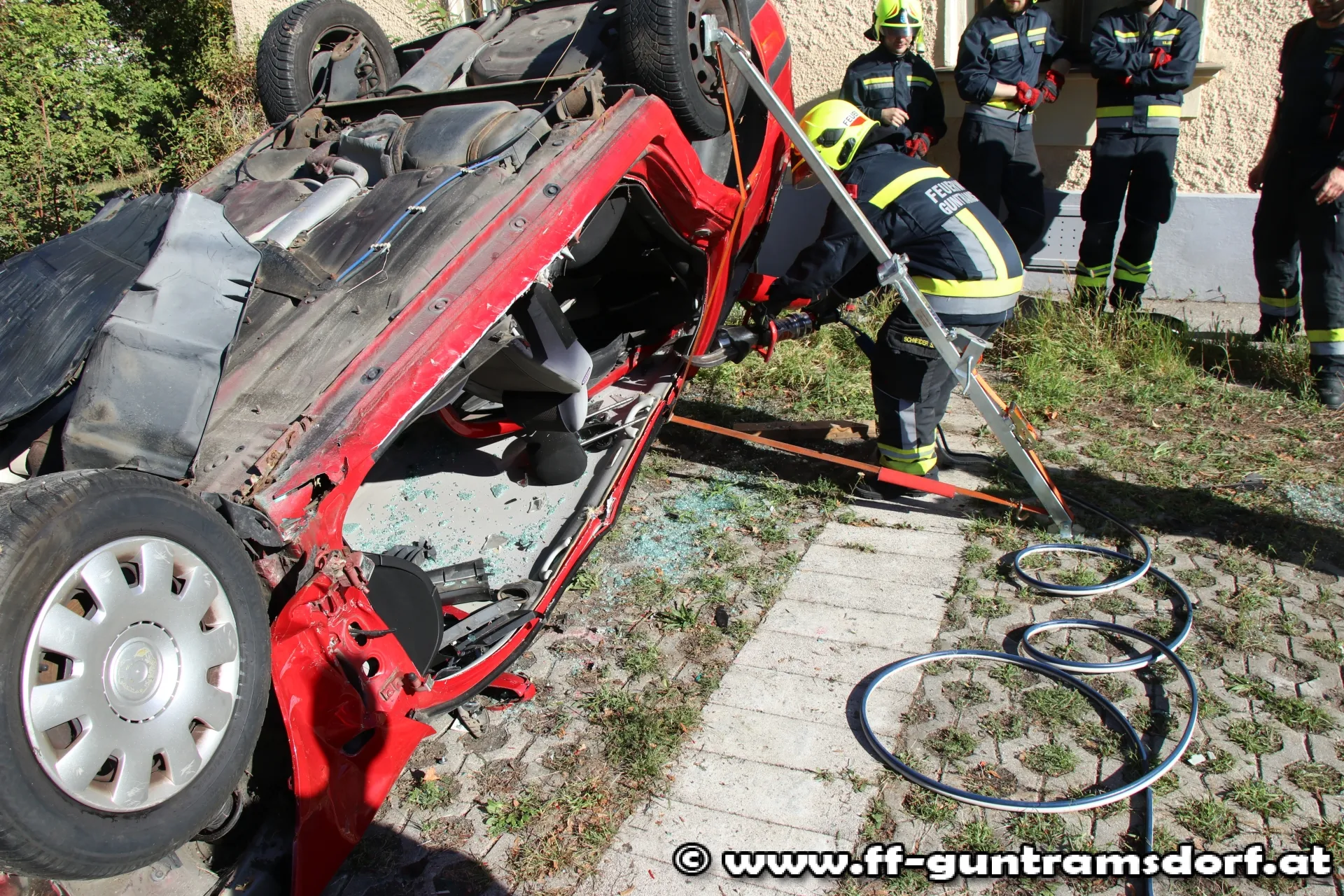 Alle gesteckten Übungsziele konnten ohne Probleme erreicht werden. Leider kommt es immer häufiger vor, dass die Feuerwehr Guntramsdorf zu Verkehrsunfällen mit eingeklemmten Personen alarmiert wird. Mit einem derartigen Übungsvormittag sind wir bestens für den Ernstfall gerüstet und können rasch und sicher handeln.