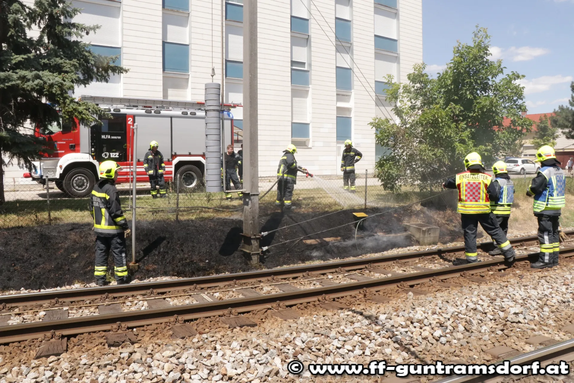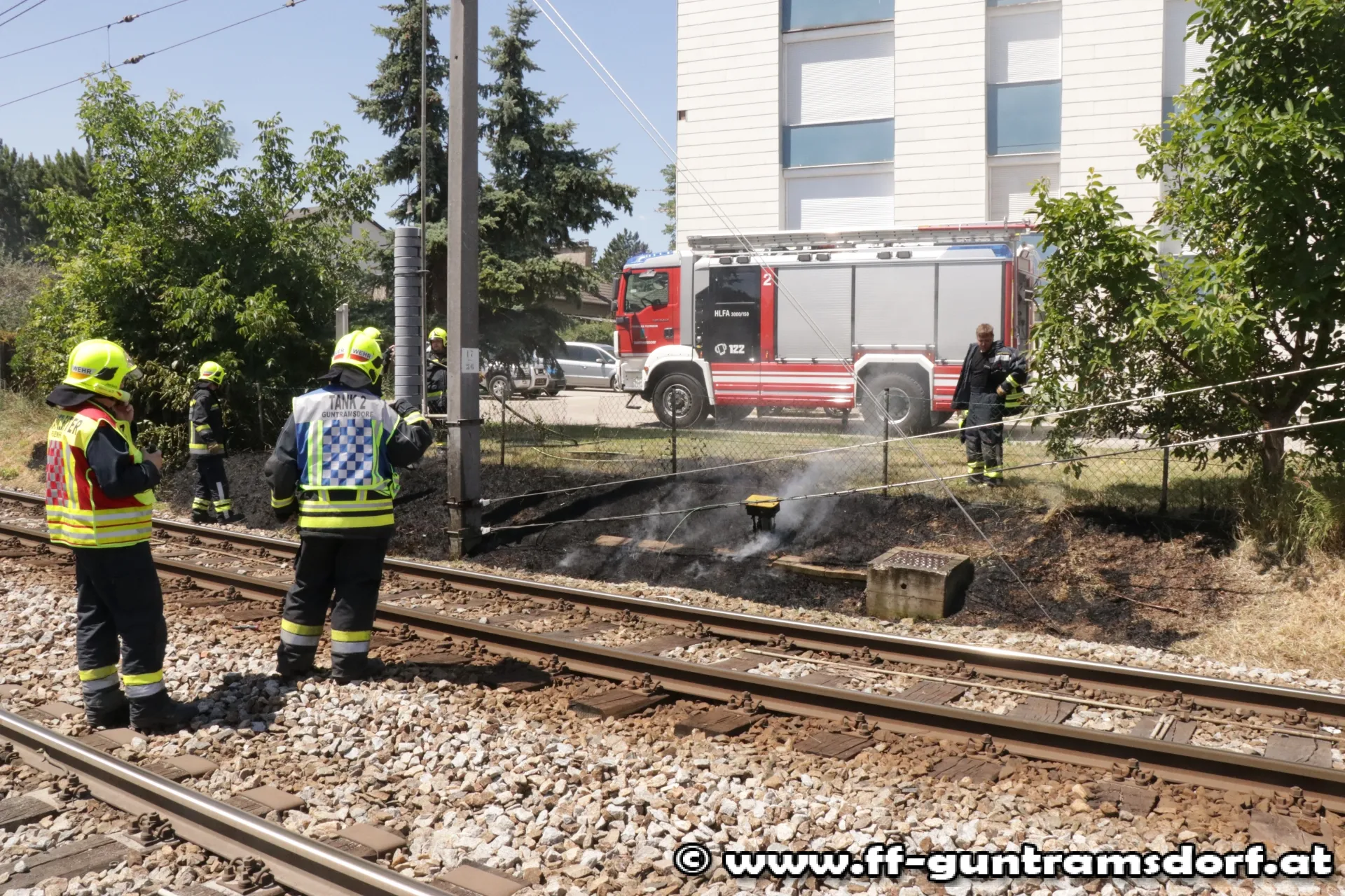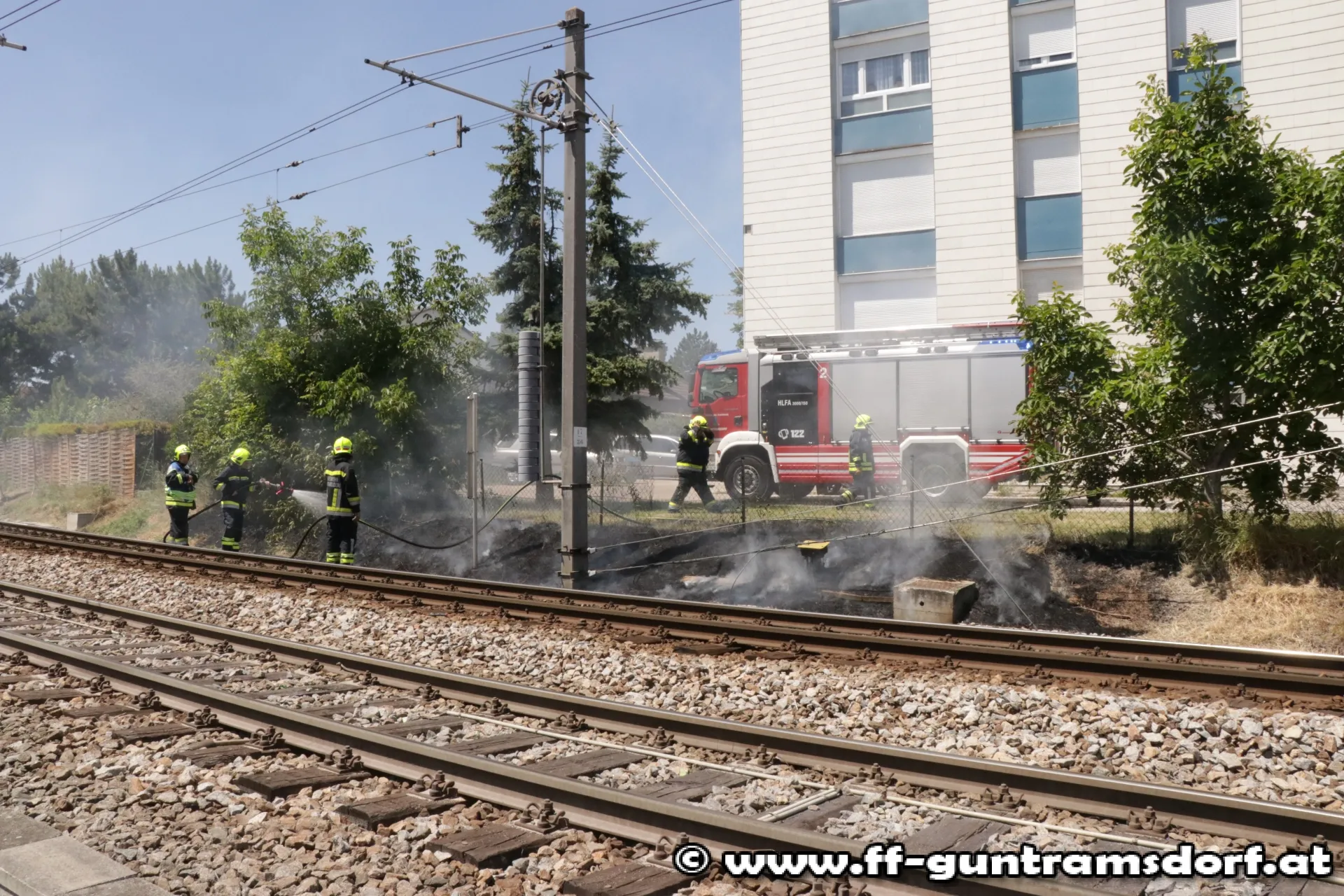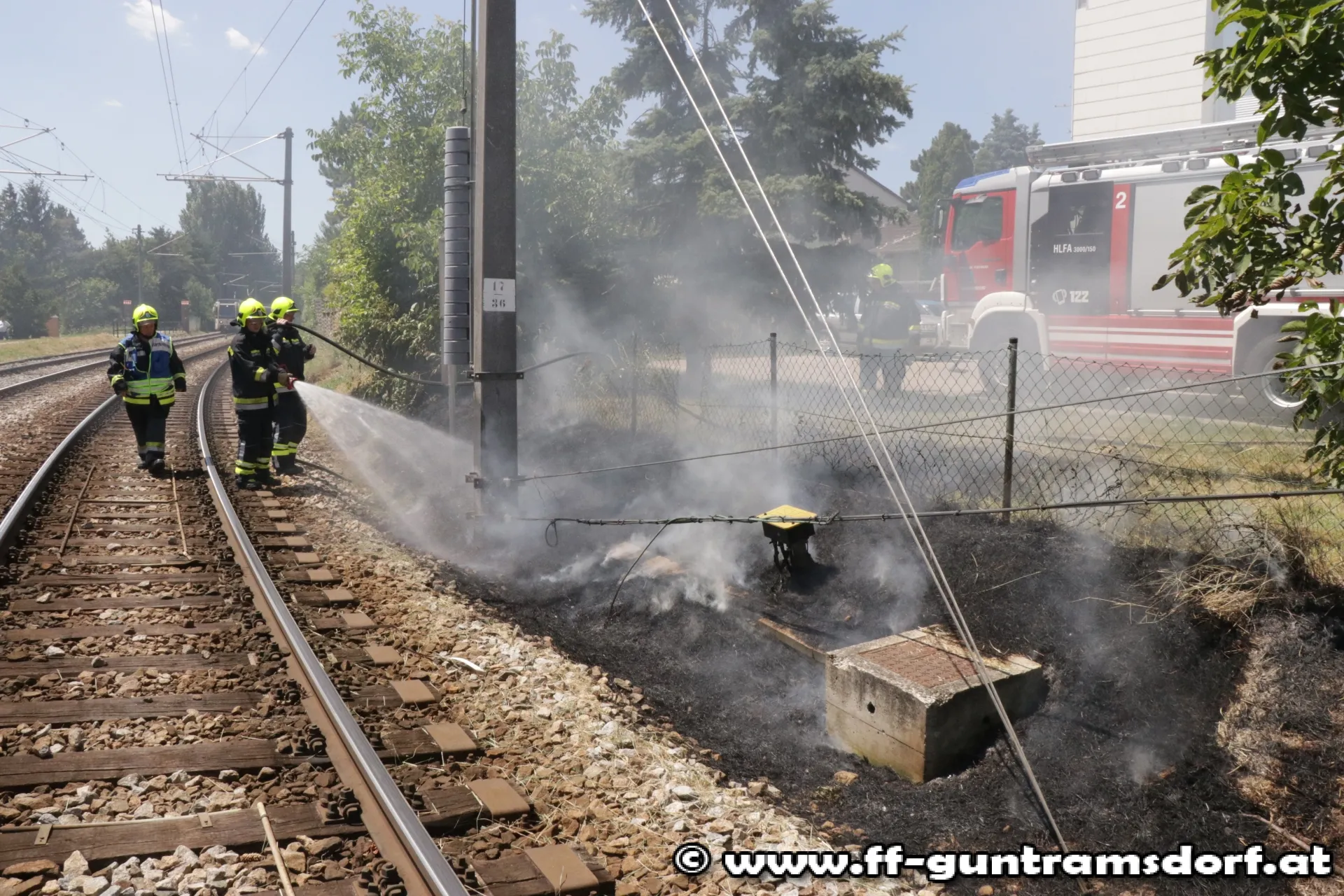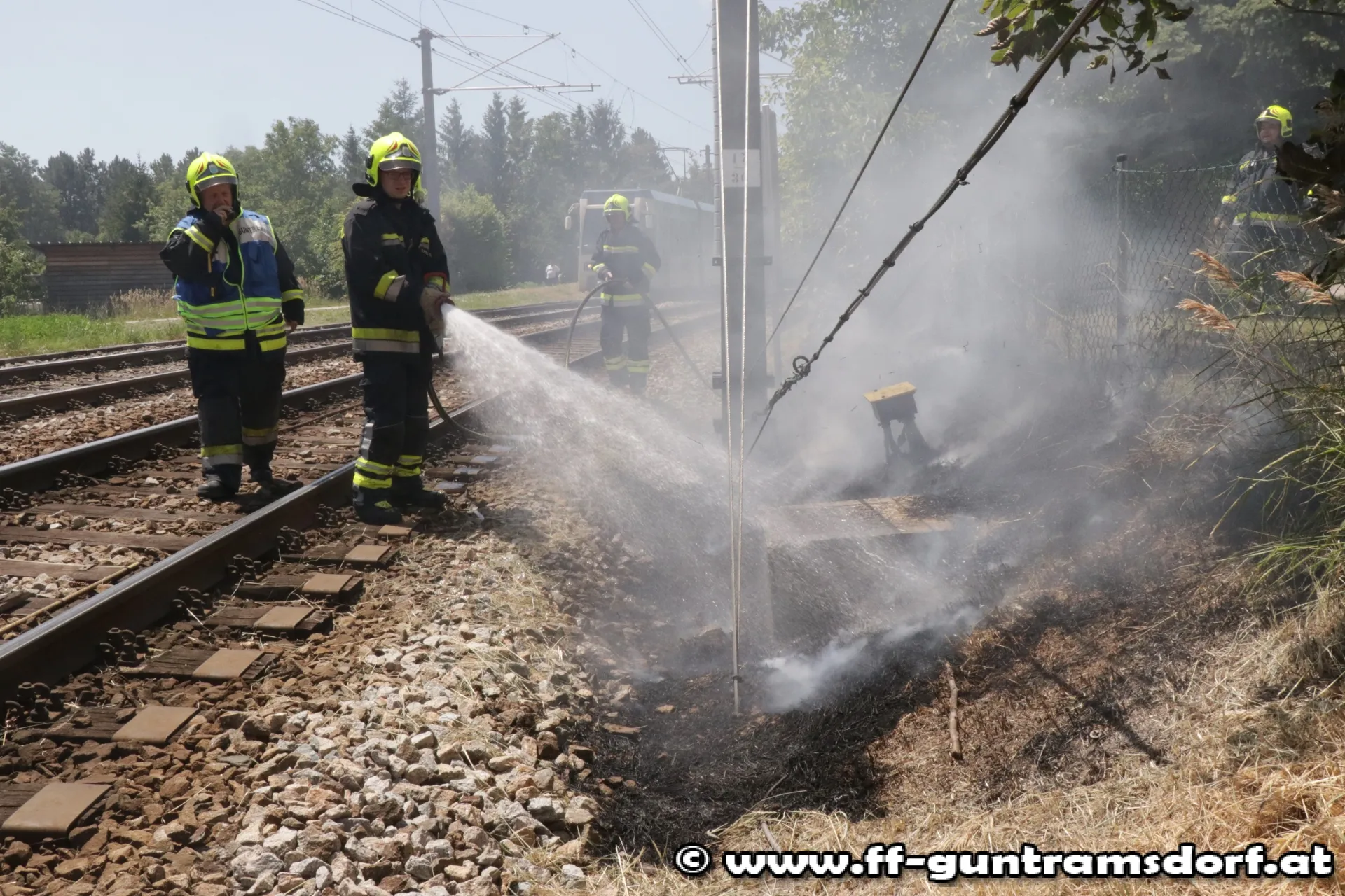 Um 12,25 Uhr wurde die FF Guntramsdorf zu einem Flurbrand in der Nähe des Pielerteichs (vormals „Herzteich“) alarmiert. Der kleine Brand im Bereich des Bahndamms der Badnerbahn konnte mit einer Schnellangriffsvorrichtung des Hilfeleistungsfahrzeuges rasch gelöscht werden. Allerdings wurden durch das Feuer Kabelstränge der Bahn beschädigt. Nach Absicherung der Stelle und Verständigung der Wiener Lokalbahnen konnten die 14 Feuerwehrmitglieder, die mit drei Fahrzeugen (davon zwei Tanklöschfahrzeuge) ausgerückt waren, wieder einrücken.