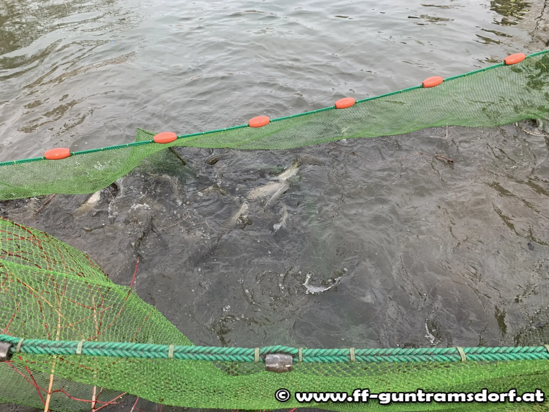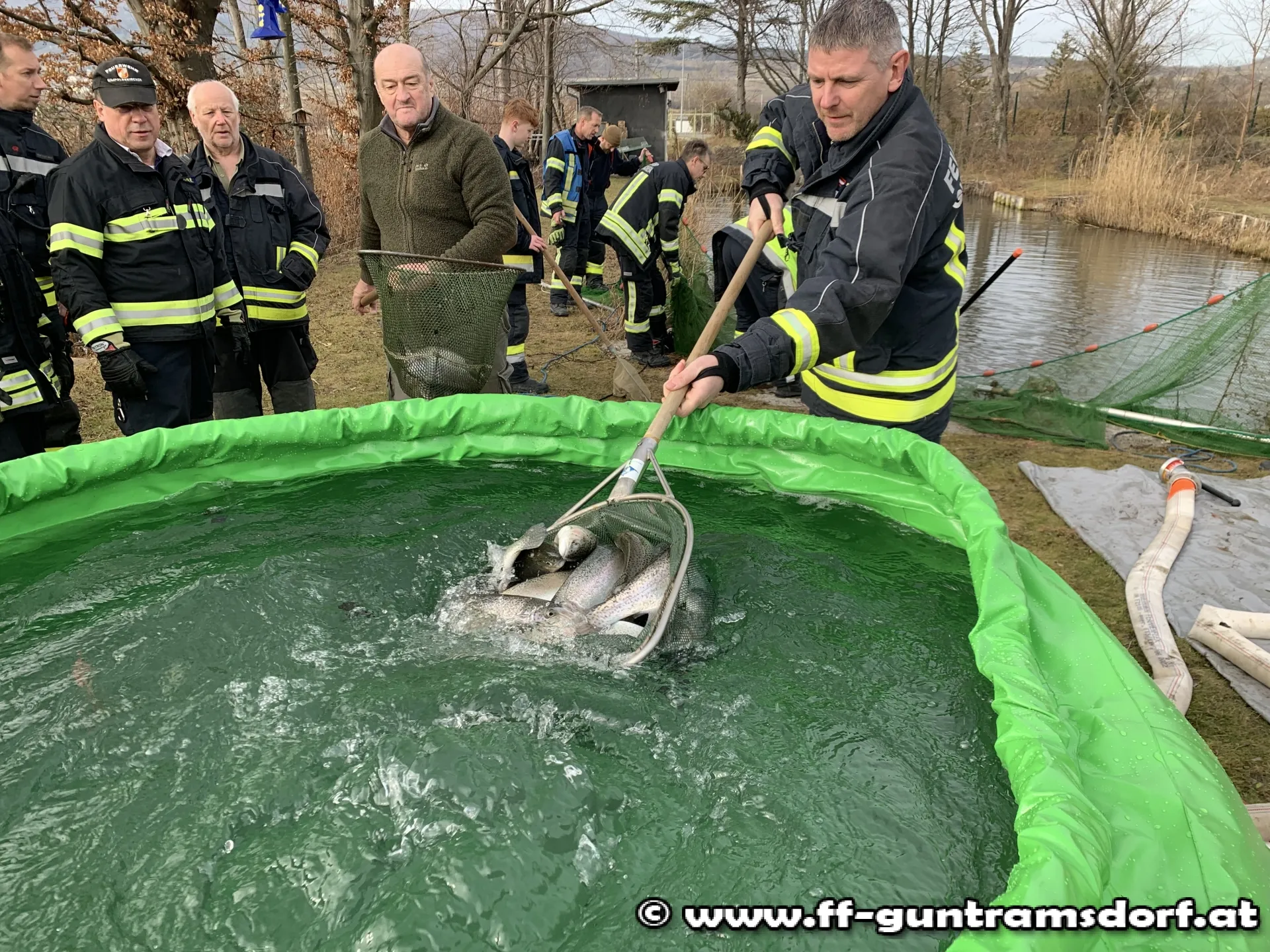 Auf Grund sinkender Wasserqualität in einem Zuchtbecken des Vereines mussten die darin besetzten Fische dringend umgesiedelt werden. Dazu wurden von der Freiwilligen Feuerwehr Gumpoldskirchen zusätzliche Behälter und Mannschaft zur Verfügung gestellt.