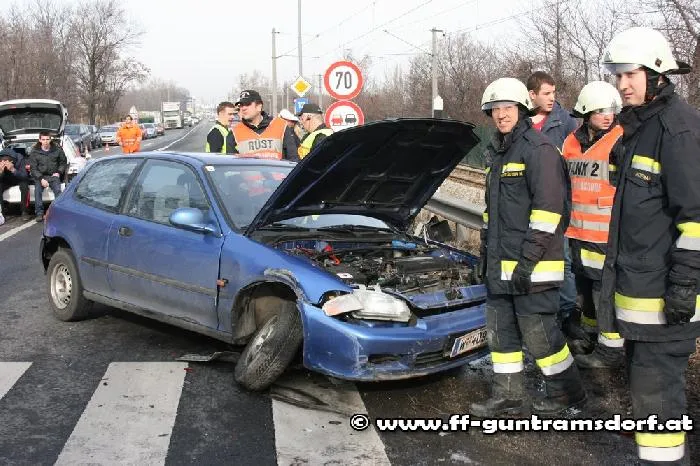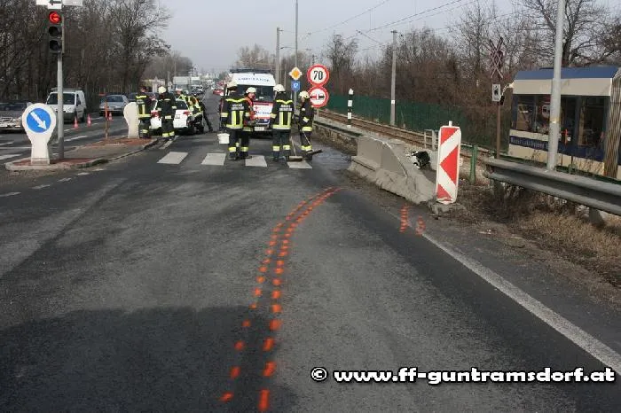 Die FF Guntramsdorf wurde um 11.59 Uhr mittels Pager und SMS zur Fahrzeugbergung alarmiert und rückte mit drei Fahrzeugen aus. Während der Bergungsarbeiten, die rund eine Stunde dauerten, musste die B17 zeitweise gesperrt werden.