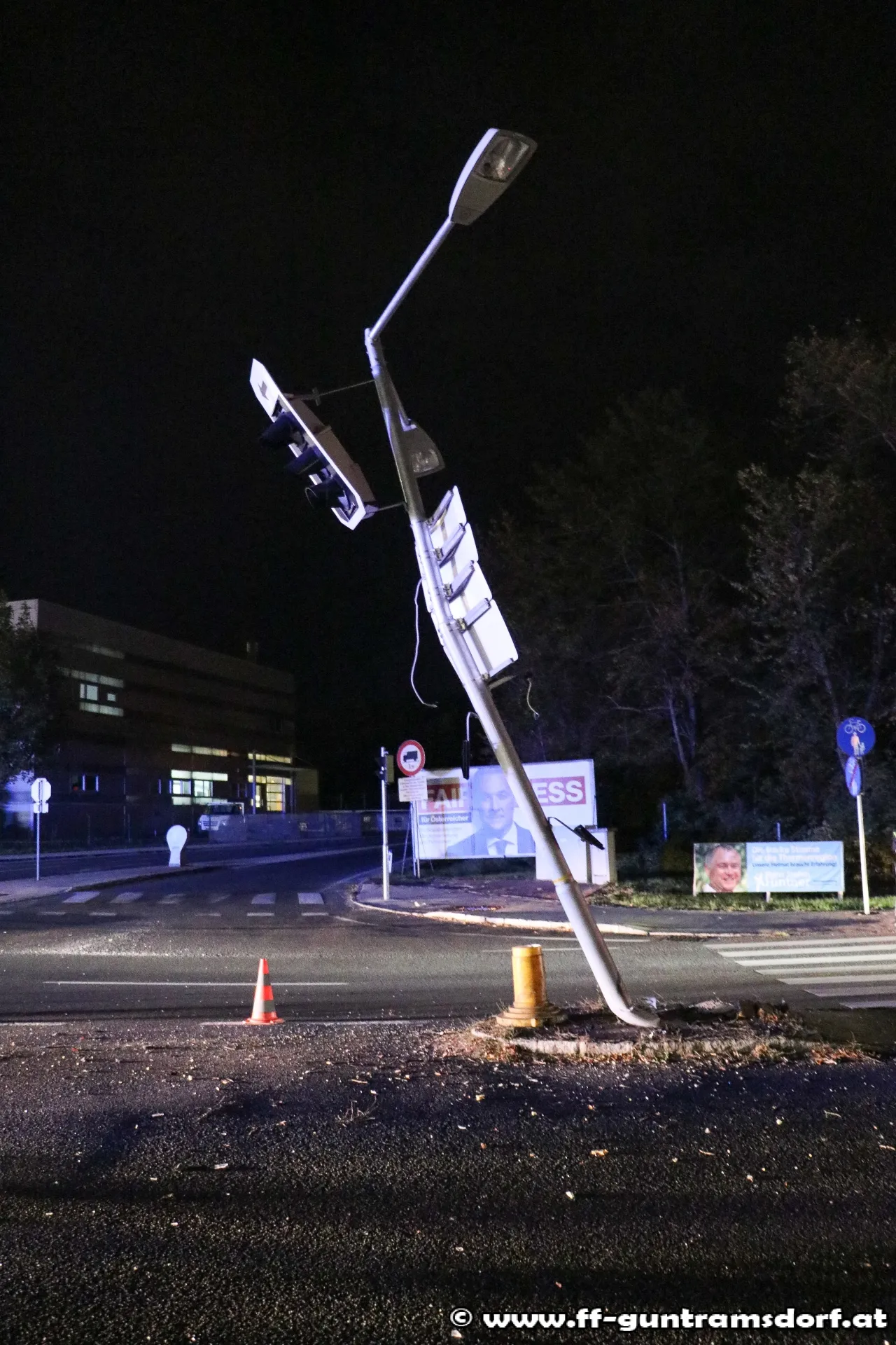 Da die Licht- und Ampelanlage umzustürzen drohte, musste diese von der Feuerwehr demontiert werden.