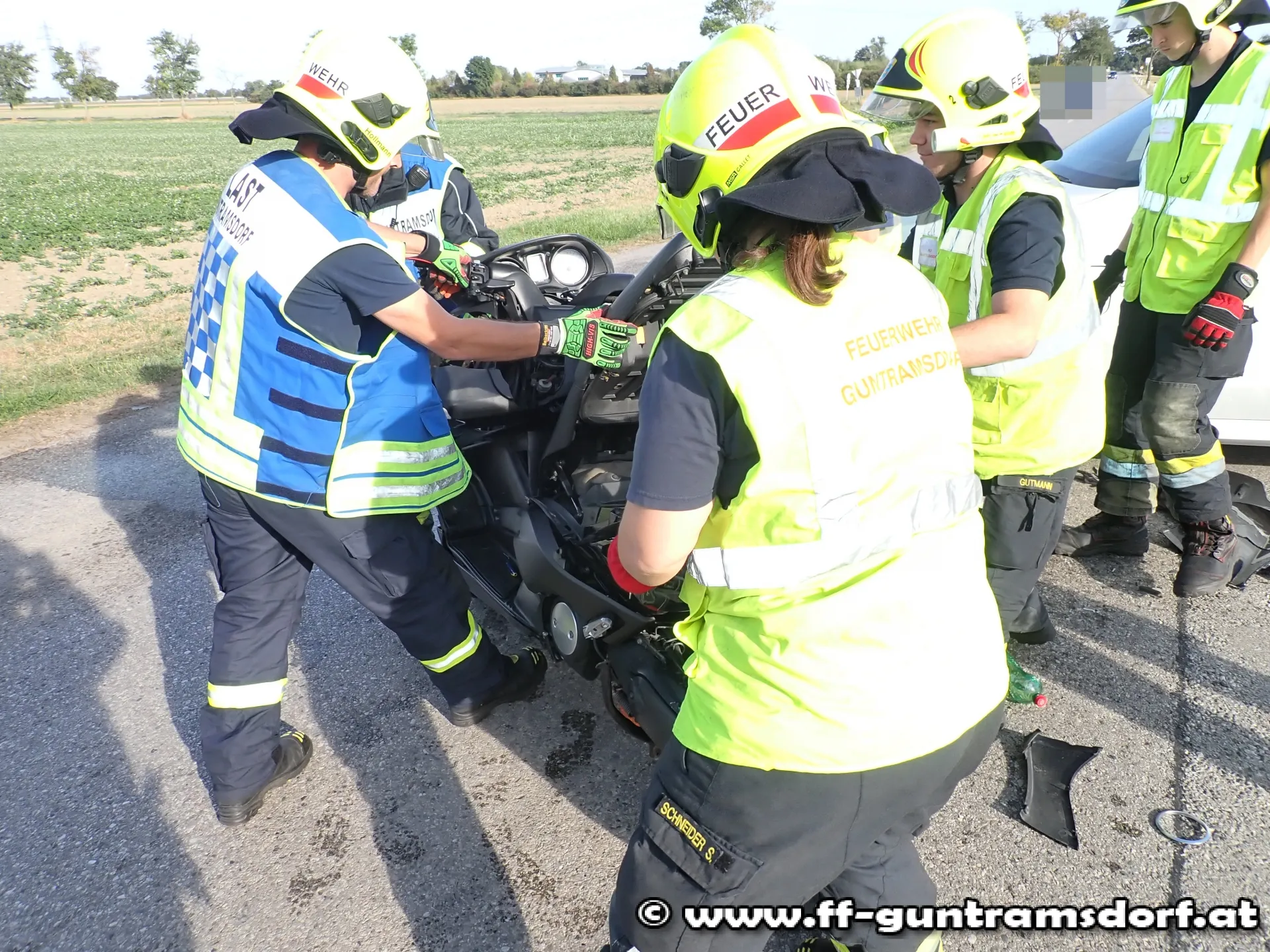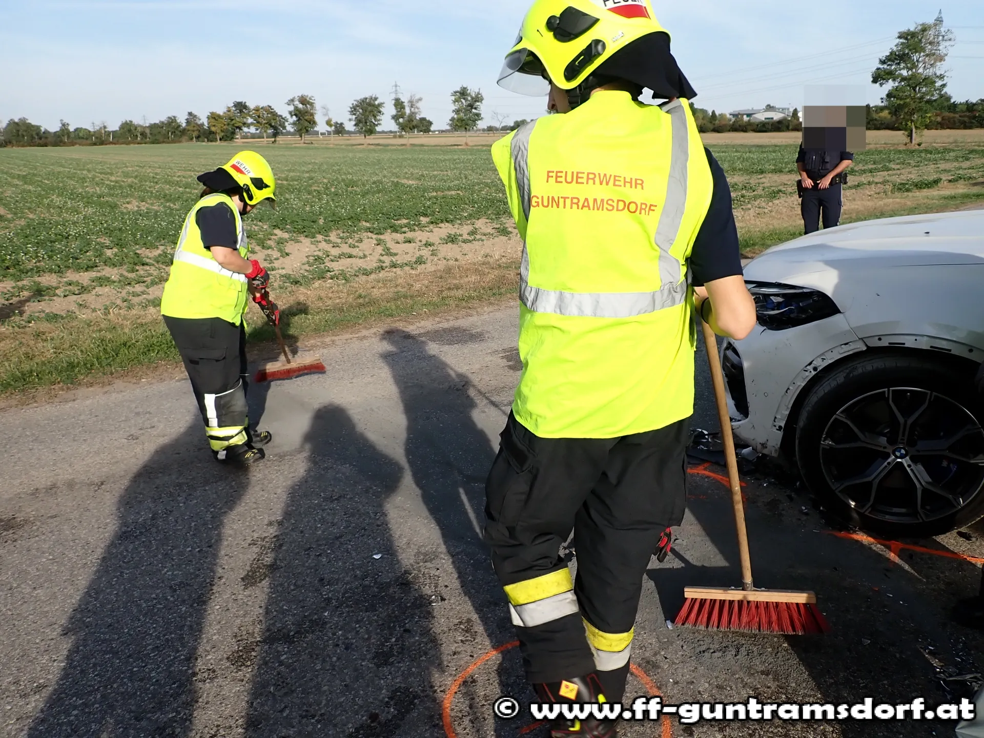 Am 6. Oktober wurde die Feuerwehr Guntramsdorf um 15:29 Uhr zu einem Verkehrsunfall auf die L2084 auf Höhe der Bauernhallen alarmiert.