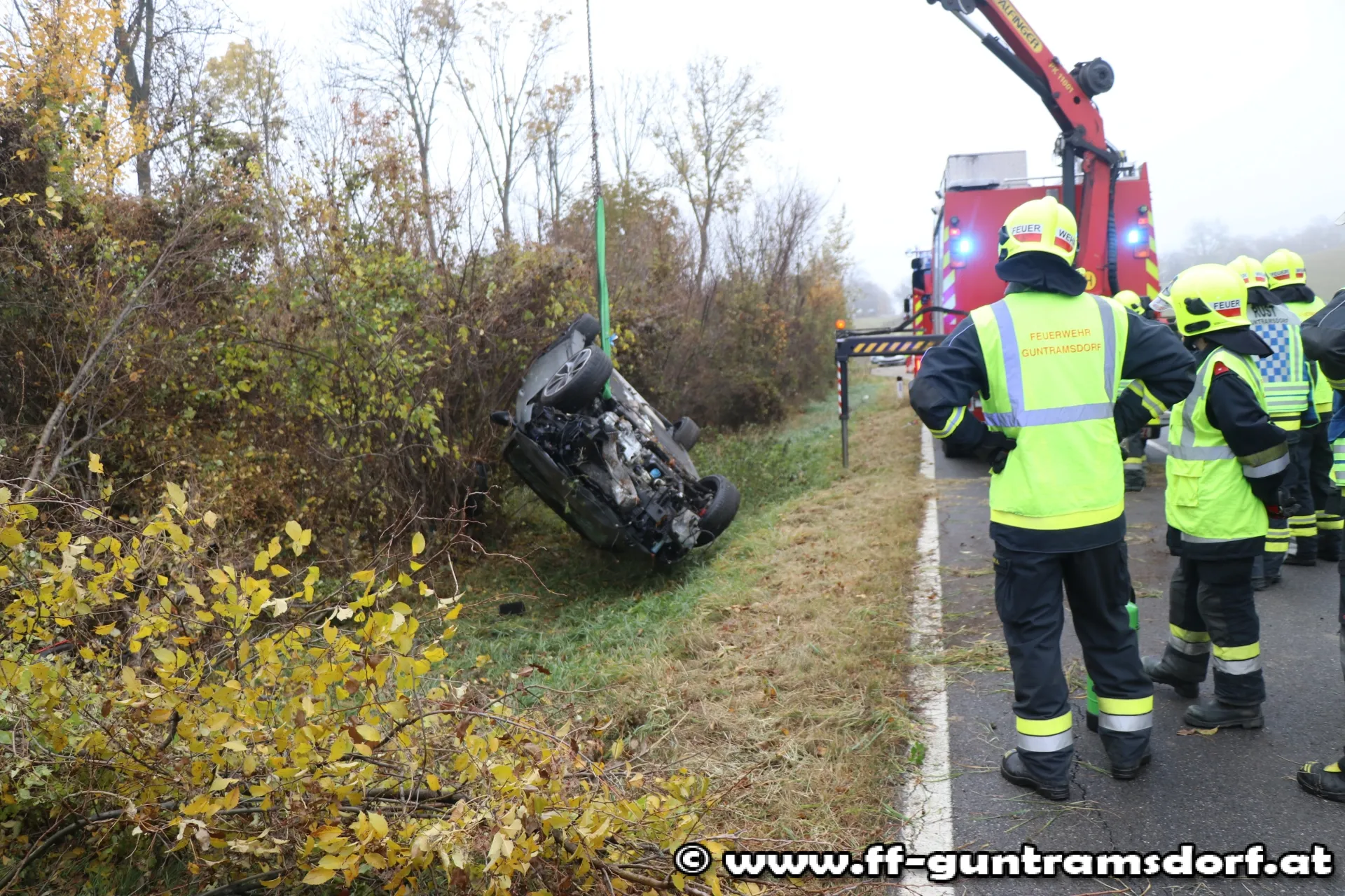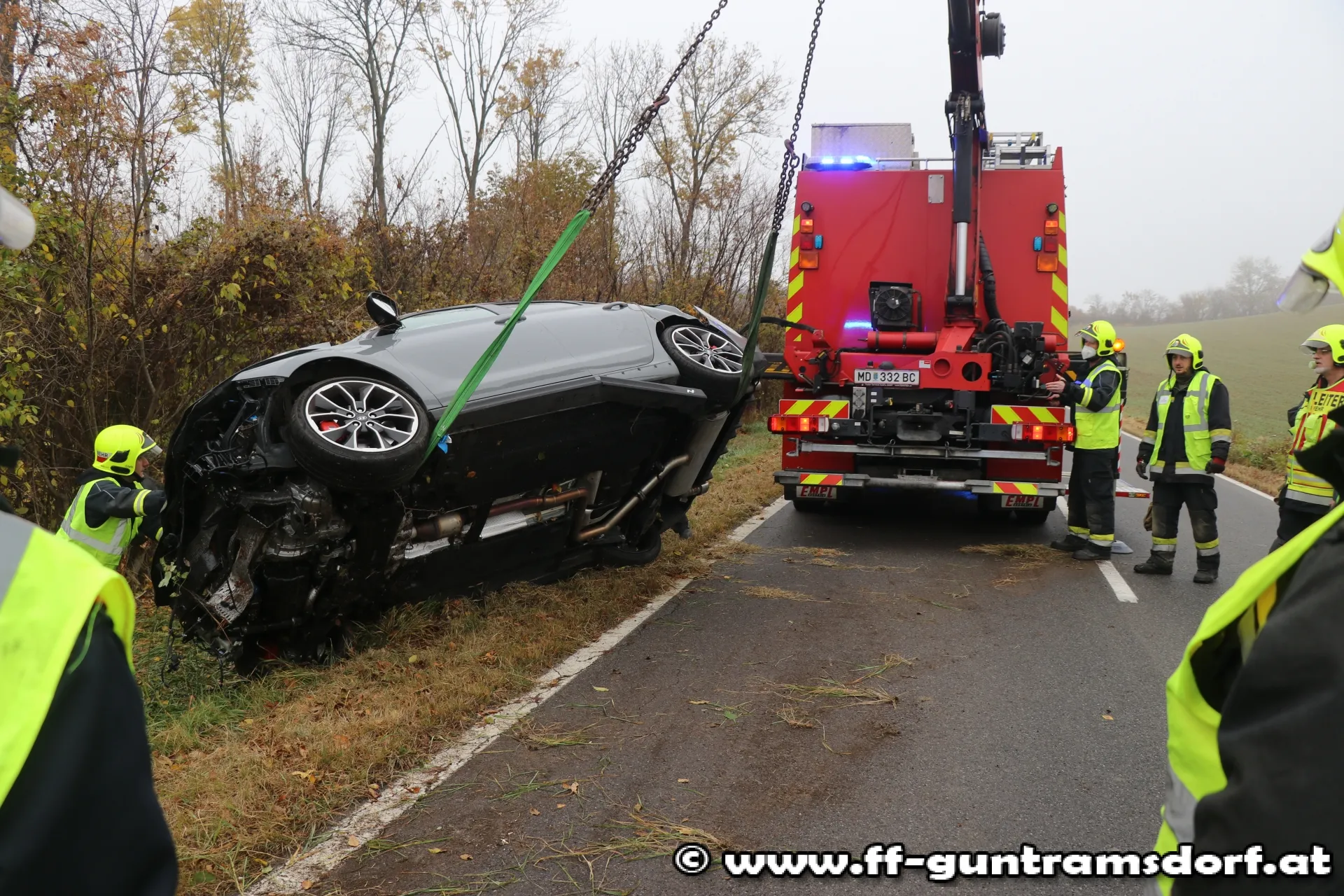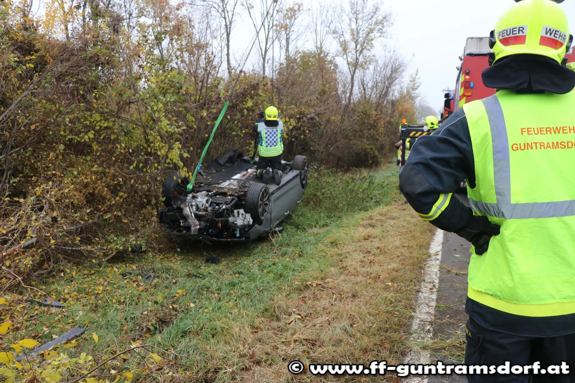 Auf der Weinbergstraße hatte der Lenker eines PKW die Herrschaft über sein Fahrzeug verloren und war im Straßengraben gelandet, wo der Wagen auf dem Dach zu liegen kam. Auf Grund aufsteigenden Rauches oder Dampfes wurde zuerst ein Brand vermutet, was sich aber glücklicherweise nicht bestätigte. Der Lenker wurde mit Verletzungen unbestimmten Grades vom Rettugnsdienst ins Krankenhaus gebracht.