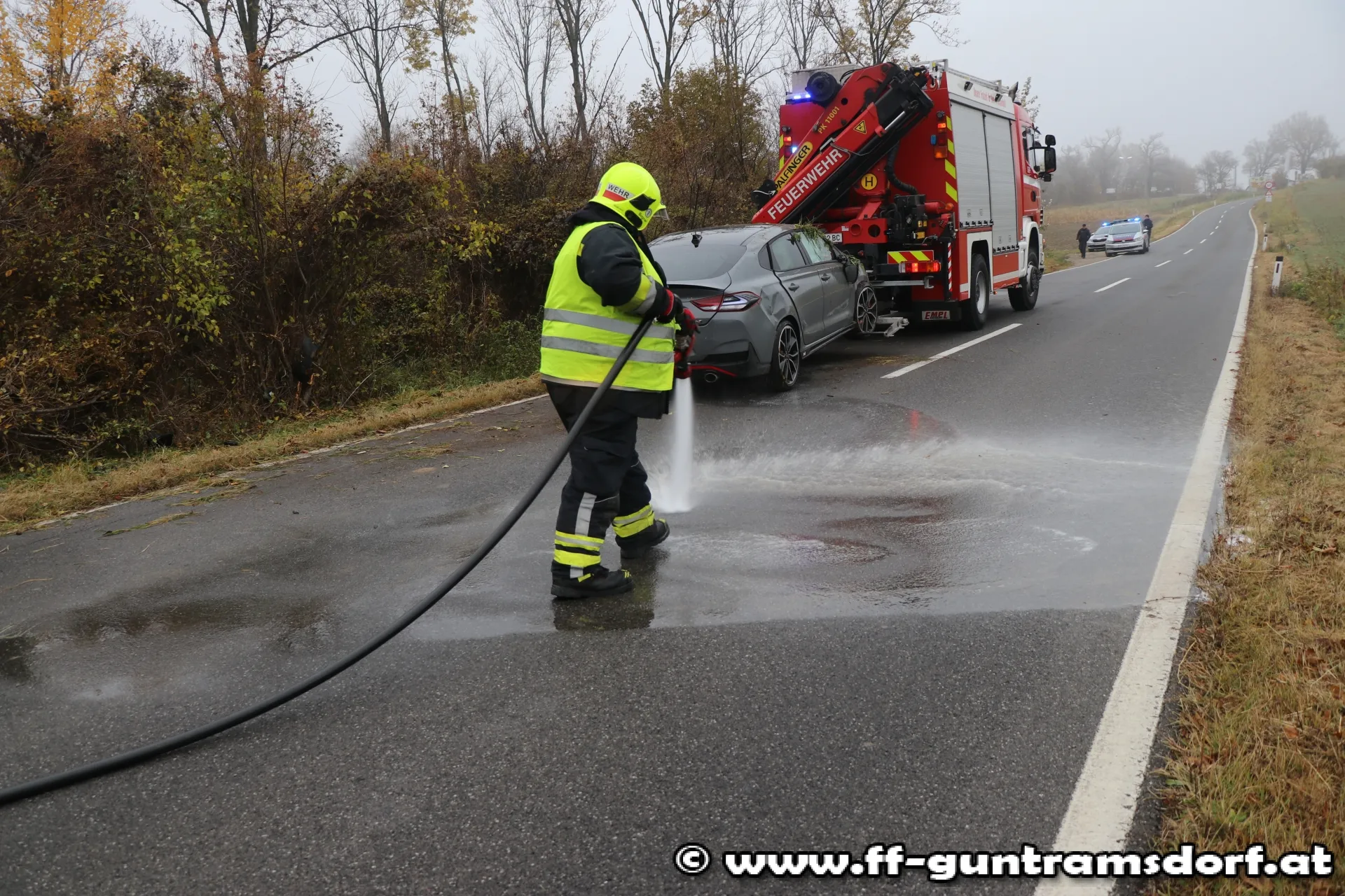 Wenige Minuten vor 12 Uhr wurde die FF Guntramsdorf mit Sirene und Pager, mit der Information „L151 [Anm.: Weinbergstraße] Km 22,80 – PKW im Graben – PKW raucht“ alarmiert. Da der Alarmplan bei Zwischenfällen auf der Weinbergstraße ab Alarmstufe 2 auch die Alarmierung der FF Gumpoldskirchen vorsieht, wurde auch unsere Nachbarwehr zum Unfallort in Marsch gesetzt.