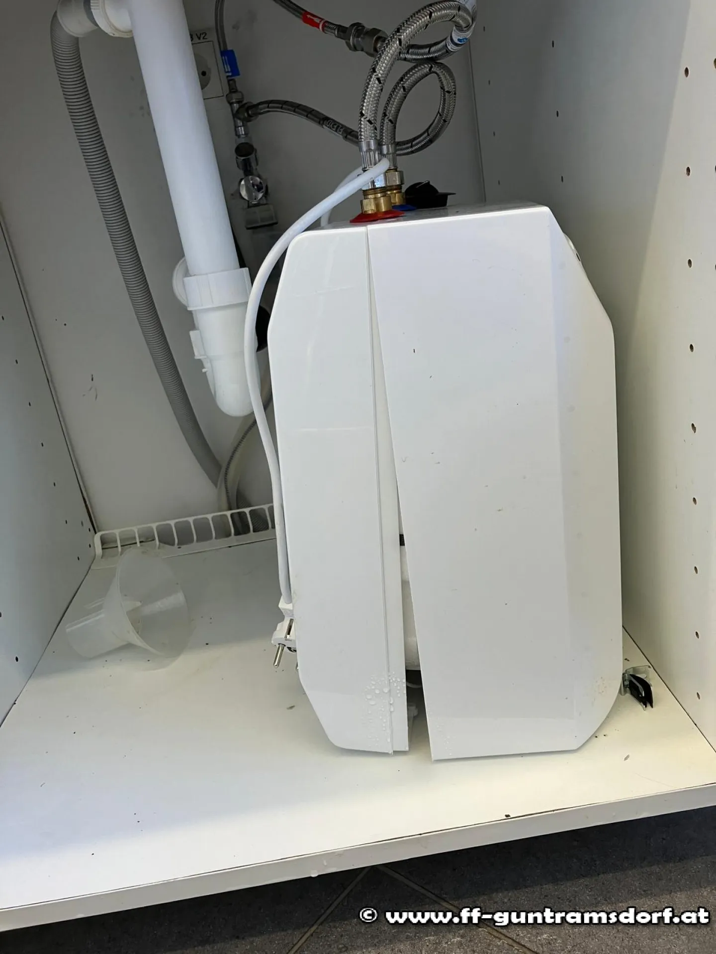 Im weiteren Verlauf konnte im 3. OG als Schadensursache ein defekter Untertischboiler festgestellt werden. Durch Absperren der Wasserzufuhr wurde ein weiteres Auslaufen verhindert.