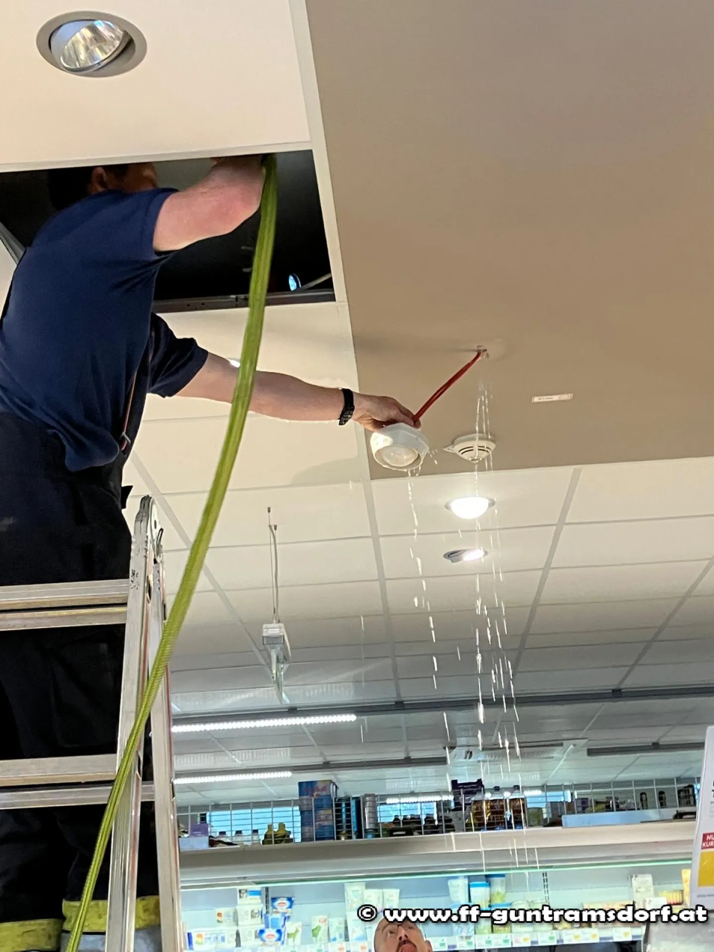 Im Zuge der Erkundung wurde festgestellt, dass im Bereich der Gebäcktheke massiv Wasser aus verschiedenen Öffnungen der Decke austrat.