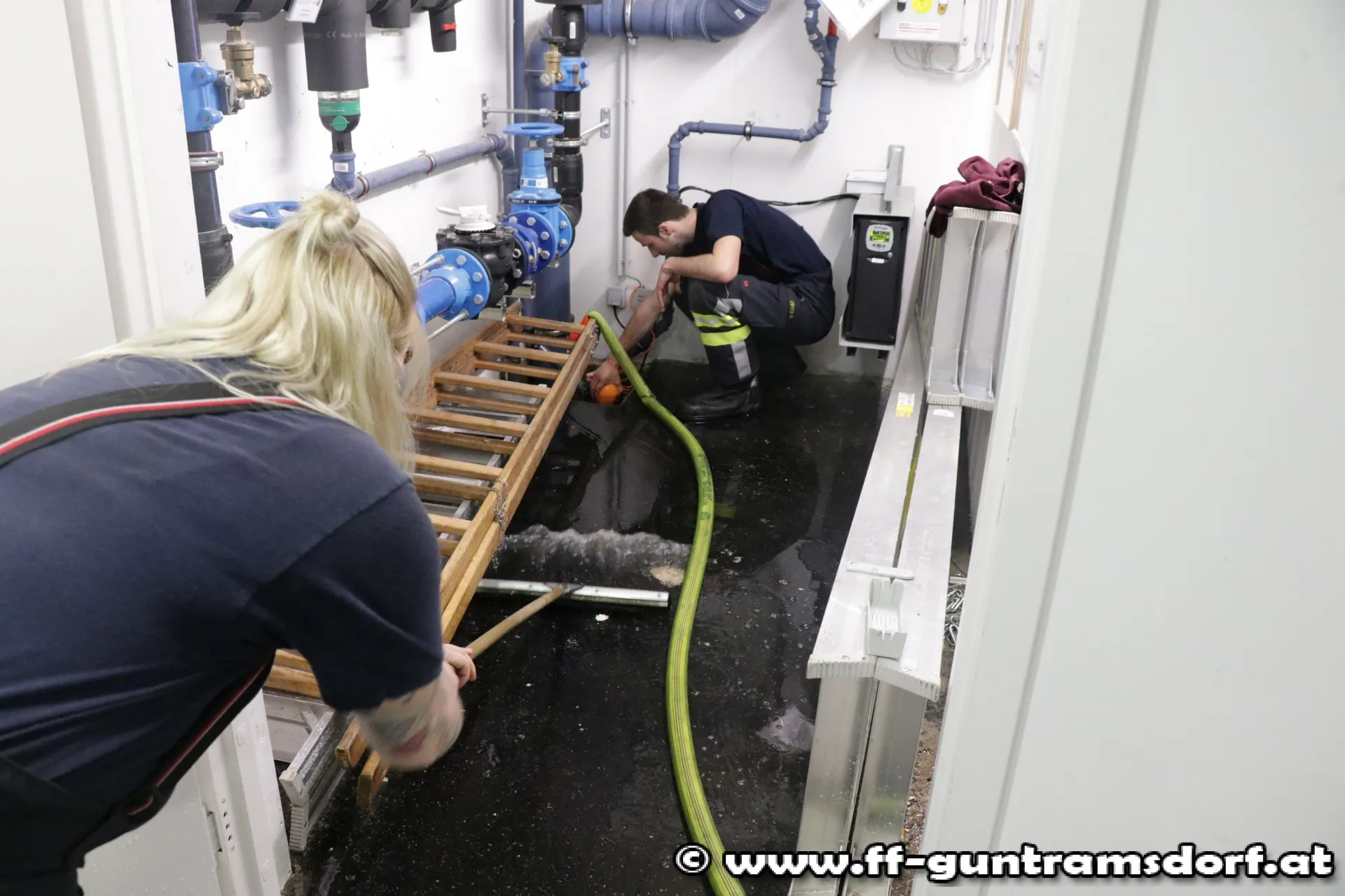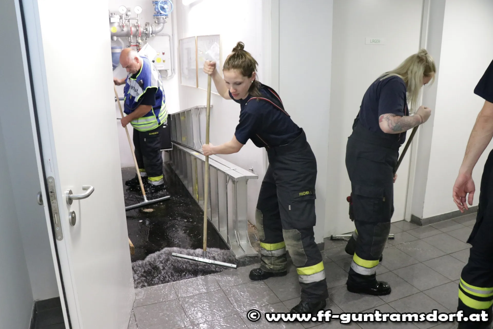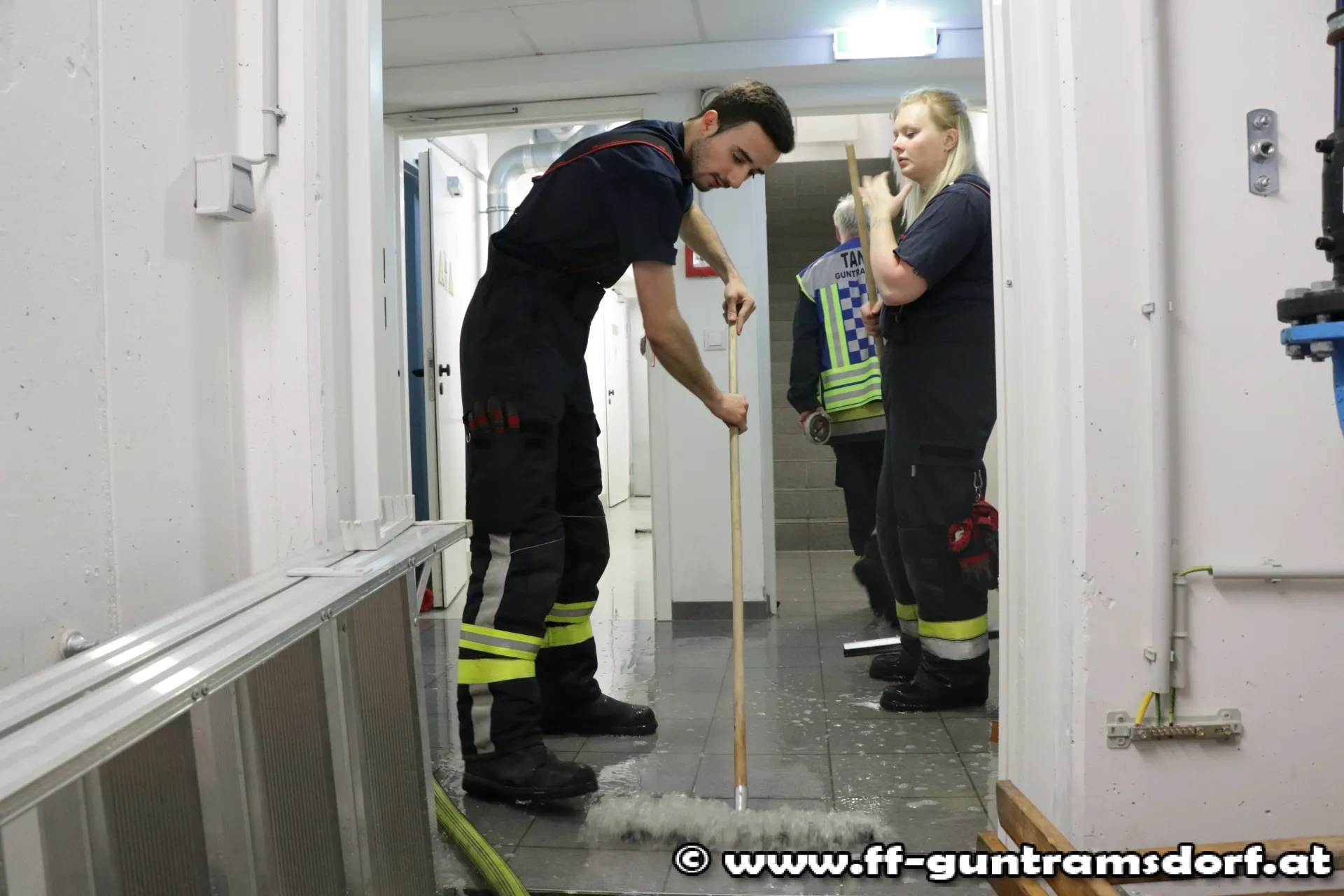 Kurz nach der Alarmierung rückten 3 Fahrzeuge zur Einsatzstelle aus. Wie bereits im Februar war die Hebeanlage im Technikraum ausgefallen und der Keller, sowie der Aufzugsschacht füllten sich langsam mit Wasser. Mittels Nasssauger und Gummischieber konnte das Wasser rasch entfernt werden.