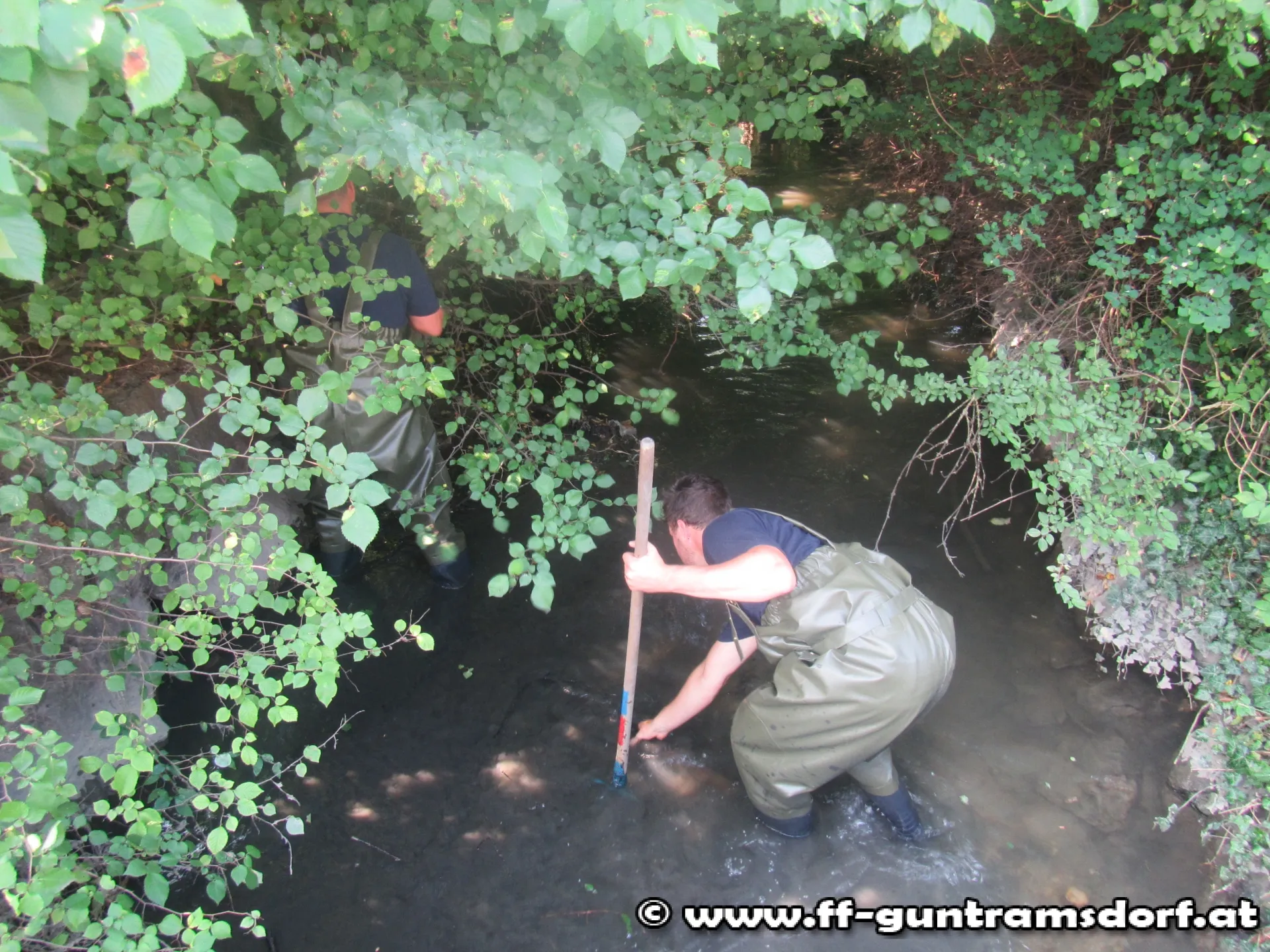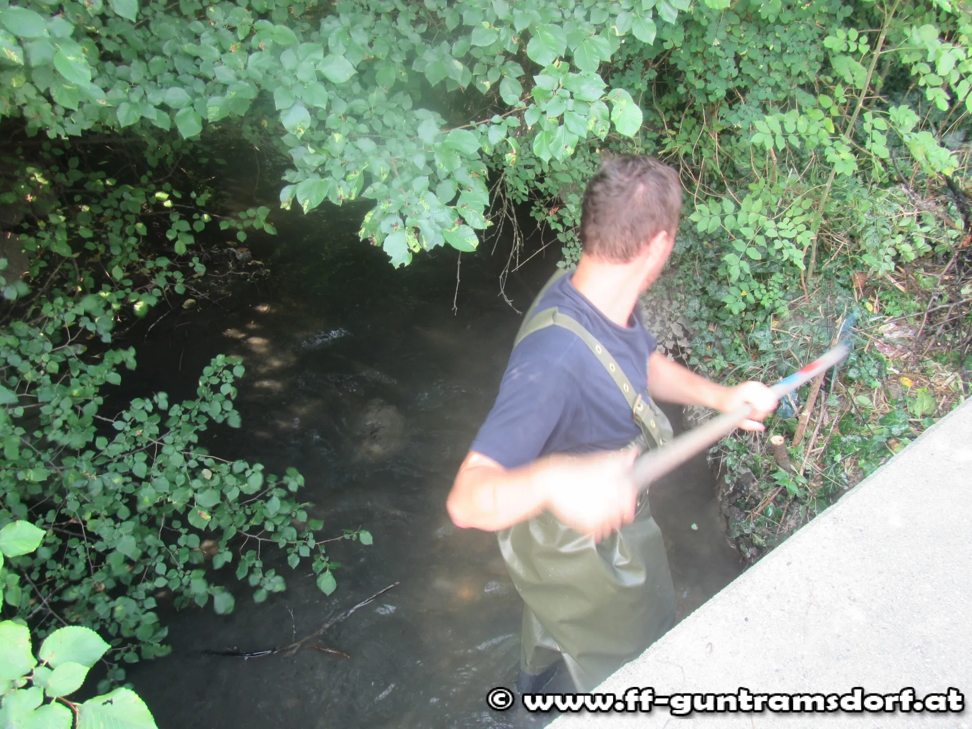 So wie schon vor drei Tagen (siehe Einsatzbericht vom 7.8.), hatte sich an derselben Stelle im Krottenbach ein Verklausung gebildet. 10 Mitglieder der FF Guntramsdorf arbeiteten rund eine Stunde lang, um diese zu beseitigen. Auch der Rechen bei der Druckfabrik wurde wieder kontrolliert und gereinigt.
