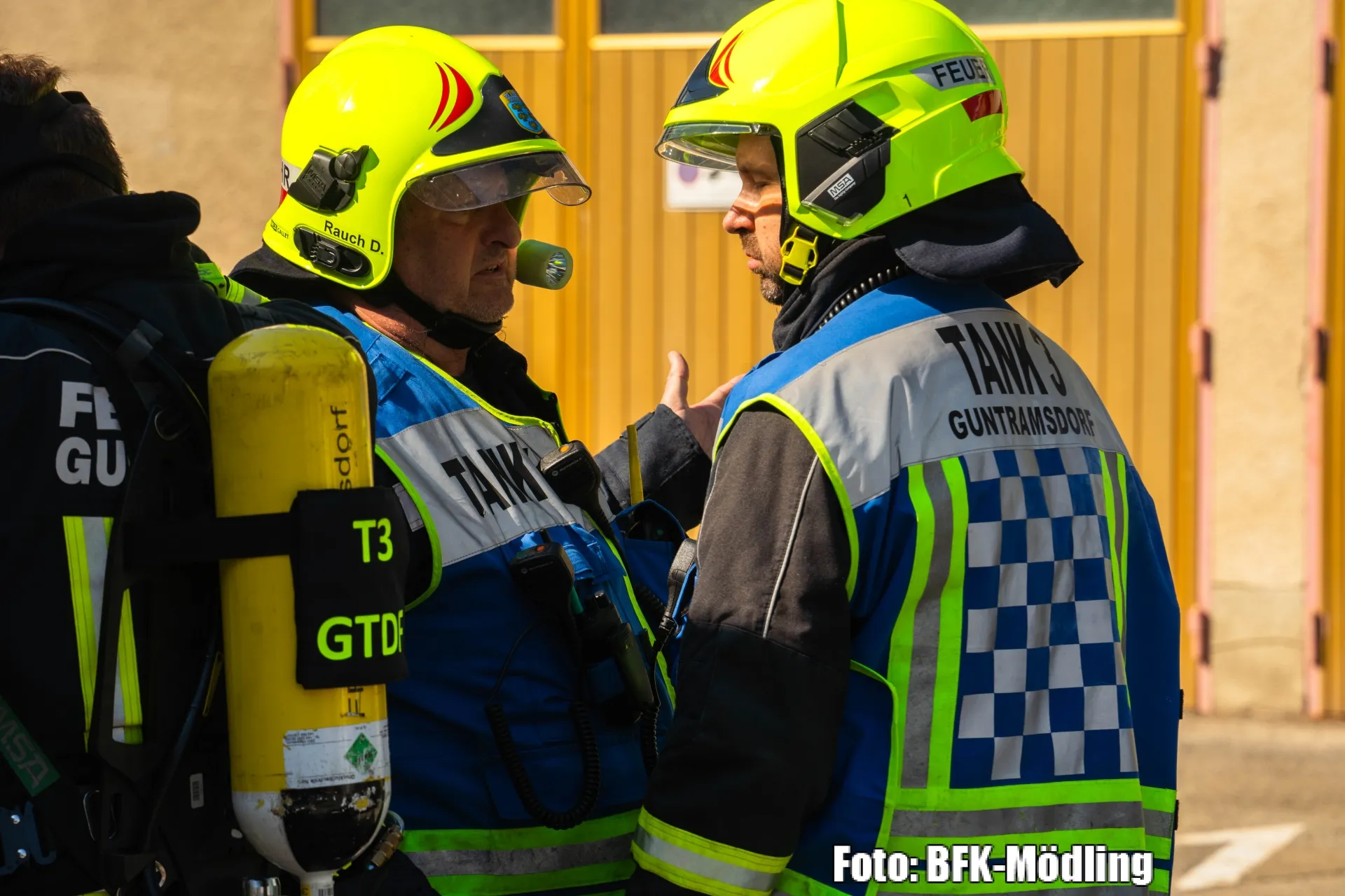 Nur wenige Augenblicke nach der Alarmierung rückten die Guntramsdorfer Kräfte im Zugsverband nach Münchendorf aus.