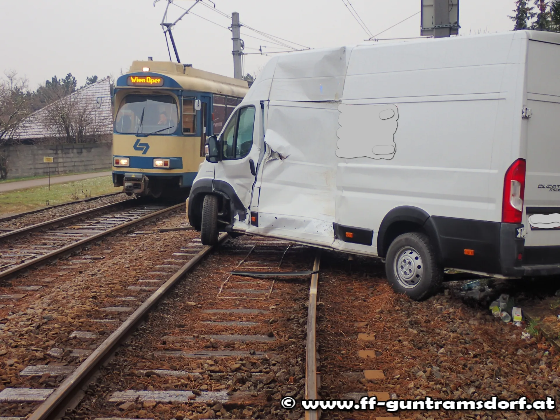 Am frühen Vormittag kam es auf der Kreuzung Steinfeldgasse – Feldgasse zu einer Kollision zwischen einem Lieferwagen und einer Zugsgarnitur der Badner Bahn, bei der glücklicherweise niemand verletzt wurde.